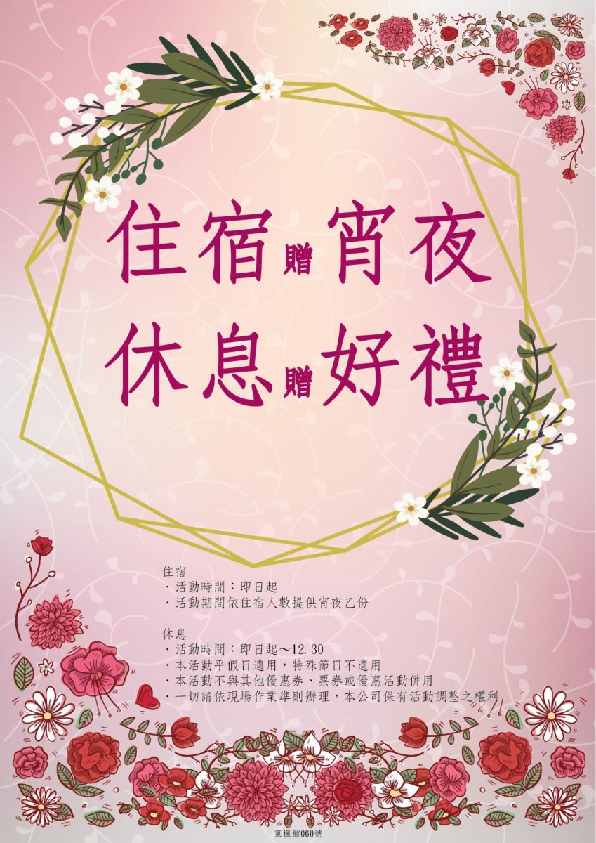 住宿送宵夜,休息送好禮