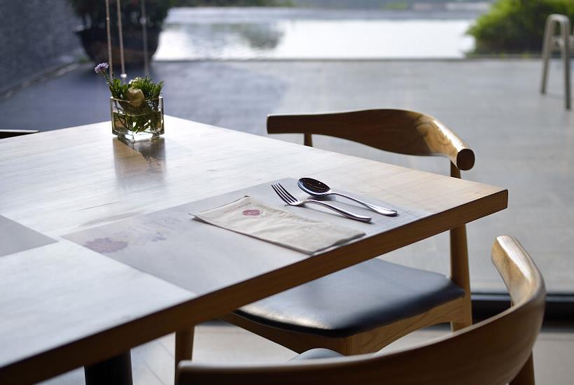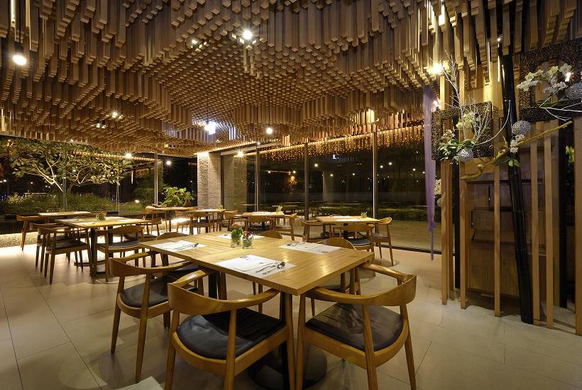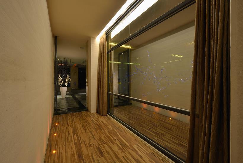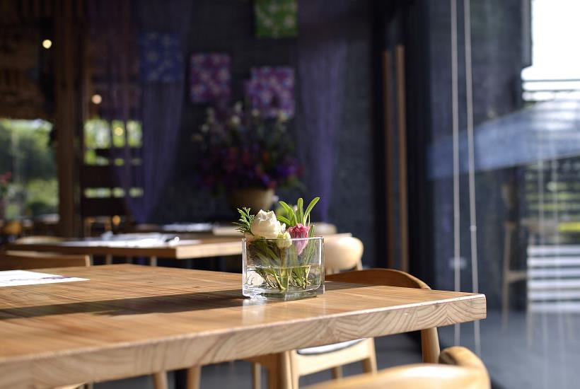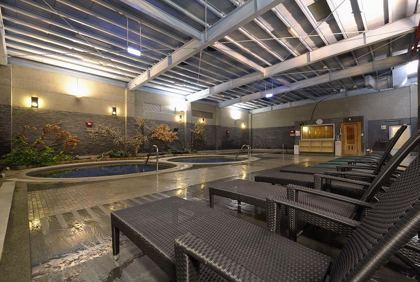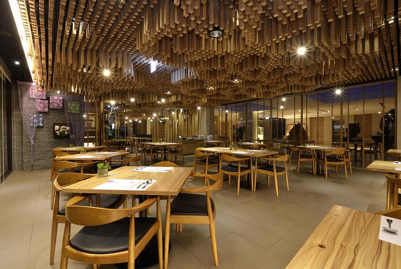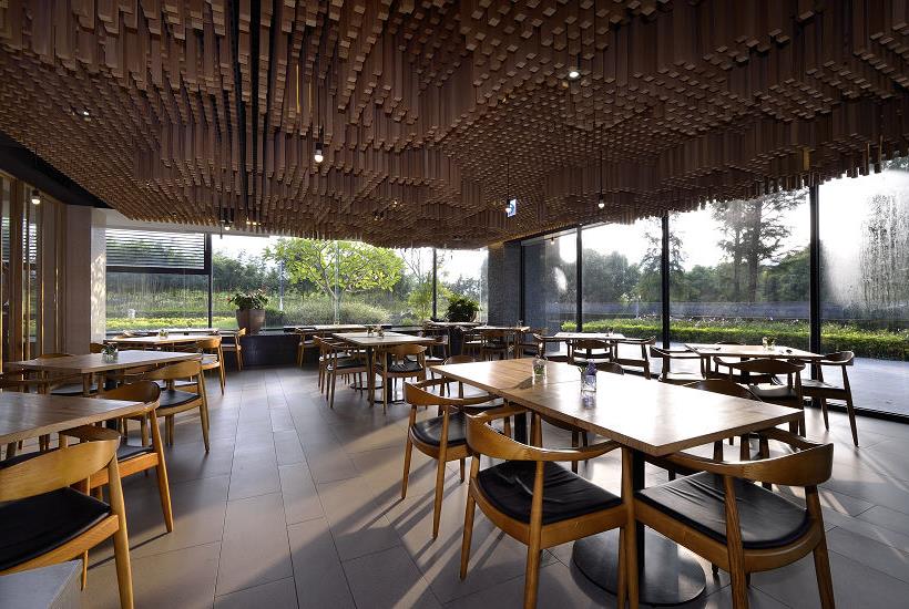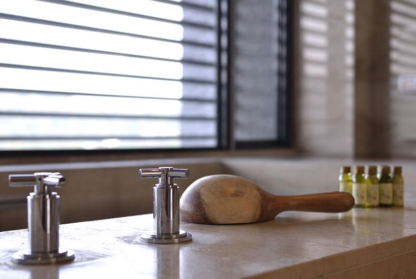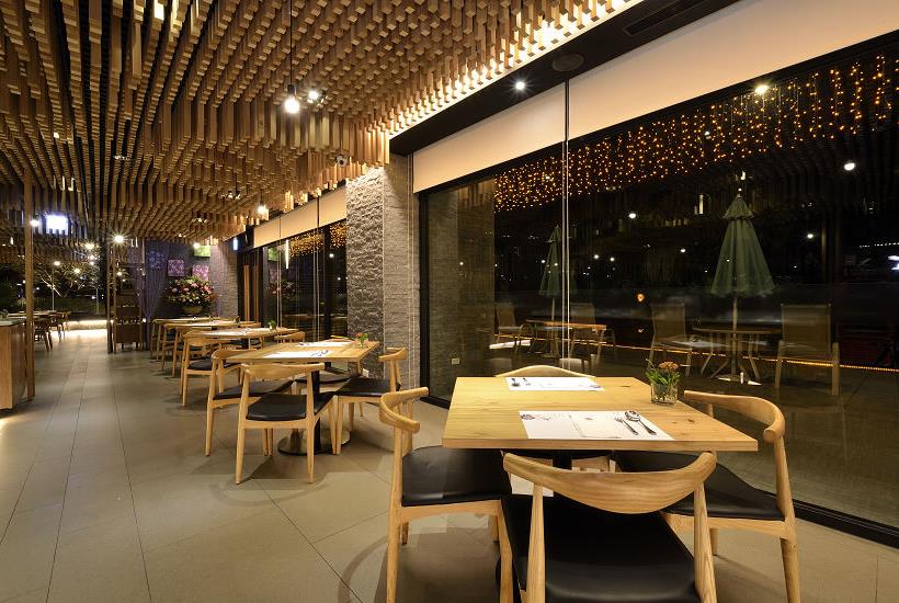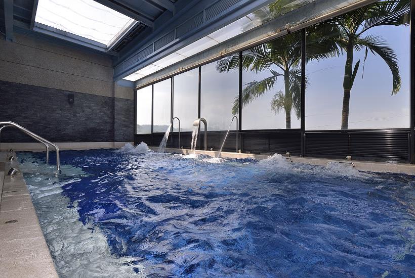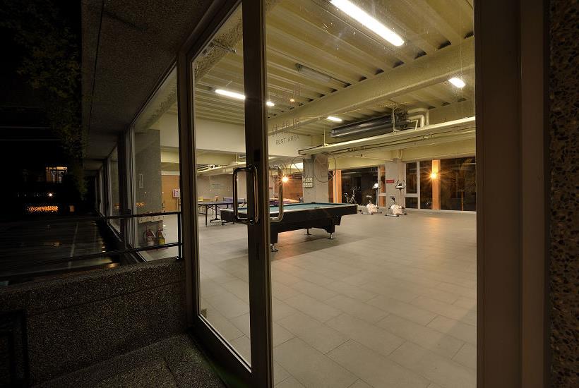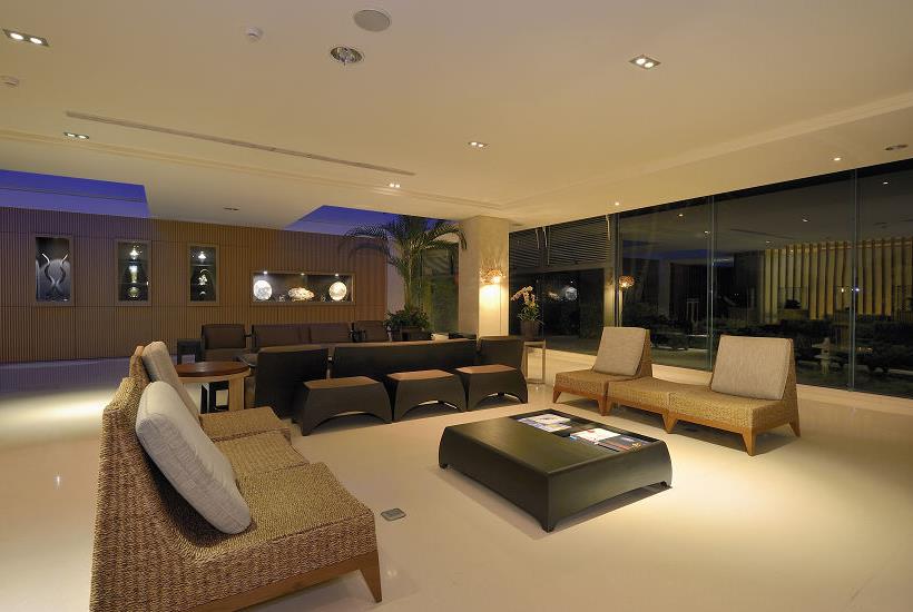 日光溫泉外觀內斂典雅的黑觀音石,烘托建築物獨特沉靜氣度,簡潔線條建構舒適空間,