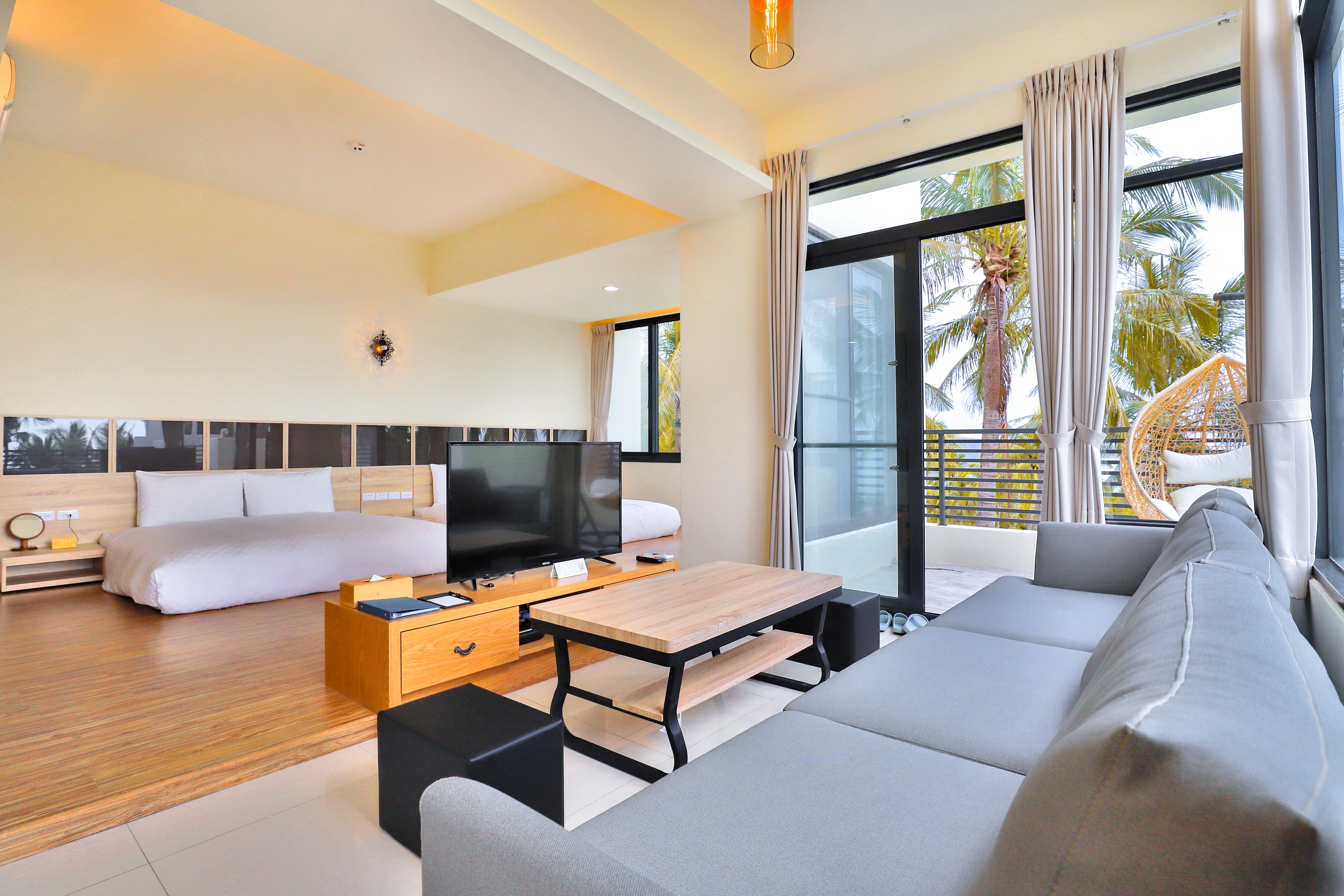 另一棟B棟,每間客房門口即是面海半戶外走廊,客房內陽台則是面花園或山景,共有三層樓。以輕工業風的元件設計與裝潢,讓喜歡略有設計空間的您,盡情享受無拘無束的自在感。早餐餐廳也位於B棟一樓。另四樓頂樓也為開放露台,可以觀星賞日出。