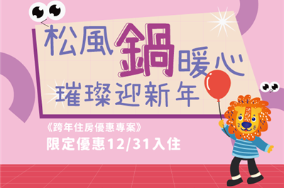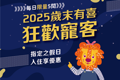 優惠促銷 走過路過不要錯過正在優惠中的飯店 台中市 【企業家大飯店】平日續住享優惠((顯示的房價是2晚的費用)) $2,300TWD起 $8,400TWD 宜蘭縣 【松風文旅】松風鍋暖心,璀璨迎新年|跨年住房專案 $4,166TWD起 $7,700TWD 台中市 【挪威森林文創館】★★★~Happy Birthday to you~慶生布置★★★ $5,980TWD起 $4,280TWD 台中市 【水舞行館】24:00後入住 (不可連住) $2,400TWD起 $5,500TWD 台中市 【台中赫絲珀高鐵行旅】延遲退房專案 $1,580TWD起 $11,800TWD 台中市 【台中沫秋立柳川行旅】延遲退房專案 $1,580TWD起 $11,800TWD 更多優惠促銷推薦 從哪裡開始 從哪裡開始您的精彩旅程? 北台灣旅遊 台北市 目前有10個優惠促銷 新北市 目前有54個優惠促銷 基隆市 目前有6個優惠促銷 桃園市 目前有45個優惠促銷 宜蘭縣 目前有29個優惠促銷 新竹 目前有1個優惠促銷 更多北部住宿景點推薦 中台灣旅遊 苗栗縣 目前有3個優惠促銷 彰化縣 目前有0個優惠促銷 台中市 目前有107個優惠促銷 南投縣 目前有17個優惠促銷 更多中部住宿景點推薦 南台灣旅遊 嘉義 目前有30個優惠促銷 雲林縣 目前有16個優惠促銷 台南市 目前有1個優惠促銷 高雄市 目前有7個優惠促銷 屏東縣 目前有0個優惠促銷 更多南部住宿景點推薦 東台灣旅遊 花蓮縣 目前有28個優惠促銷 台東縣 目前有0個優惠促銷 更多東部住宿景點推薦 離島旅遊 澎湖縣 目前有0個優惠促銷 金門縣 目前有0個優惠促銷 連江縣 目前有0個優惠促銷 更多離島住宿景點推薦