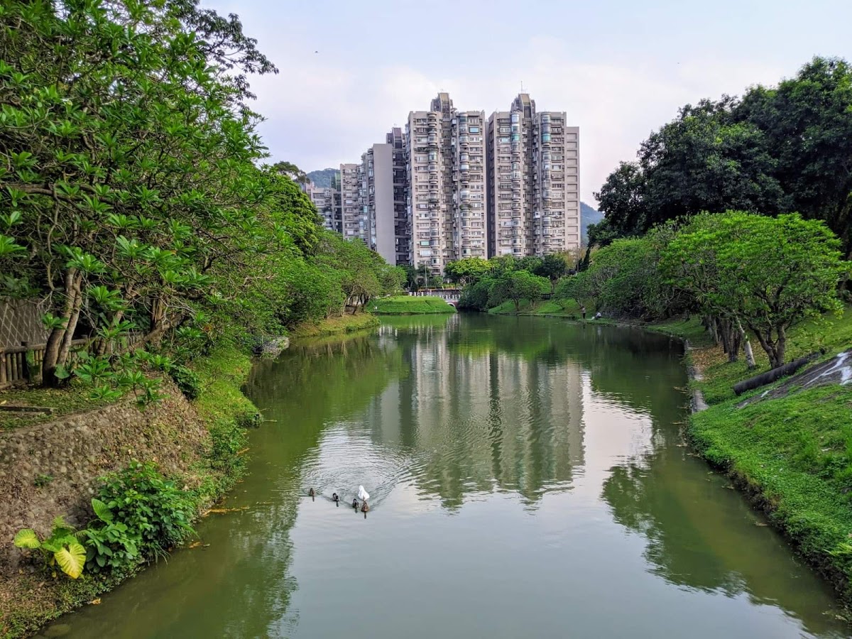 腹地大、生態豐富多樣,有草地、水池、山坡地和籃球網球場,也有小朋友的遊樂場,很適合帶家人來玩
