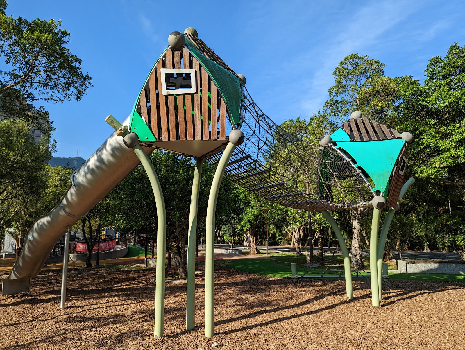 這個公園因為它的外環圍小型森林步道,給他加了很多分,很適合帶著小朋友跟老人走個步道之後,再玩一下公園裡的設施,但是維修的布條好像已經拉很久了,至少有一年了吧,到現在還圍著??是打算要把小朋友的遊戲設施荒廢??如果是真的還蠻可惜的,台北很多公園佔地面積大,如果設備能夠維護到一定的水平,那公園的存在就更有價值了⋯畢竟都說小朋友要遠離3C,那你遠離3C至少也要給他遠離3C的好地方吧~