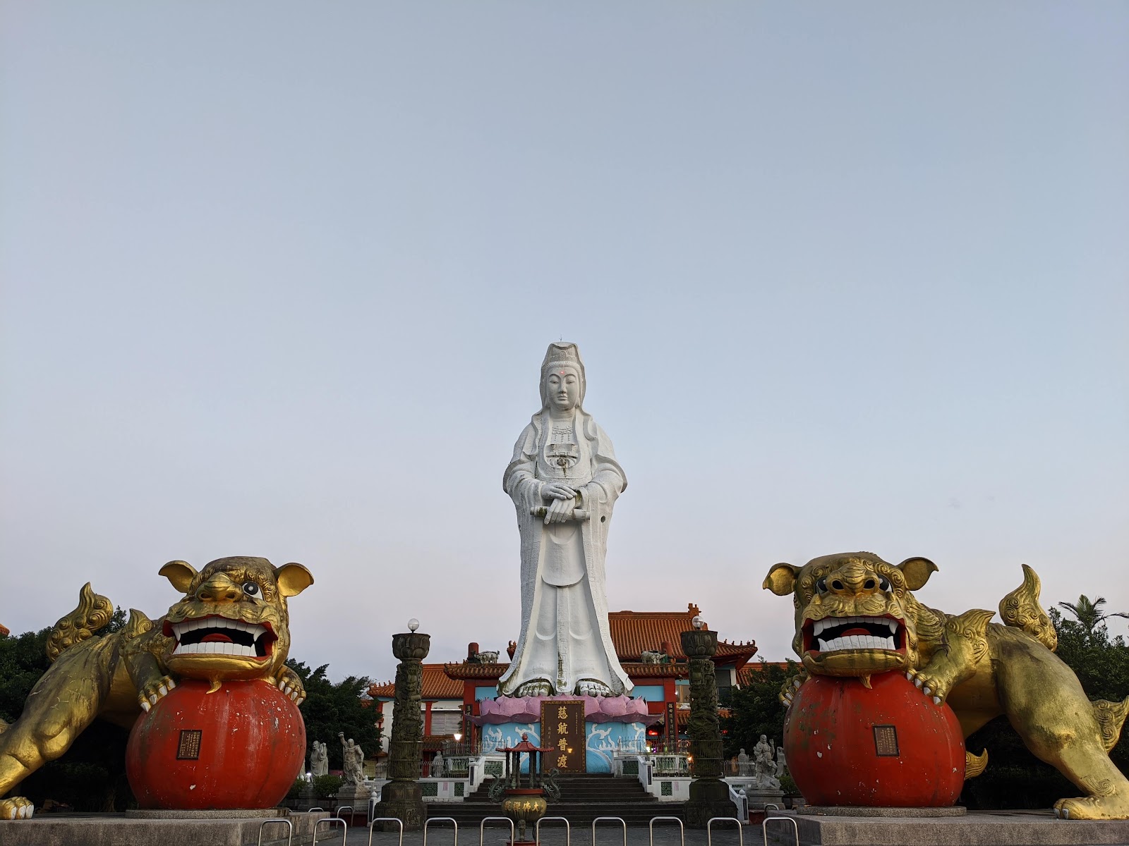 有很多神像的公園,裡面的觀音像還能爬進去,大概有四層樓高,不過裡面空間狹窄樓梯很陡峭要小心,風景也不錯,有個大鐘可以敲