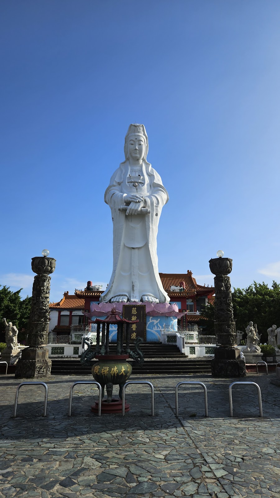 公園內有觀音佛寺,廣場一尊大型觀音像,莊嚴慈祥 到基隆玩的人一定要來走走。