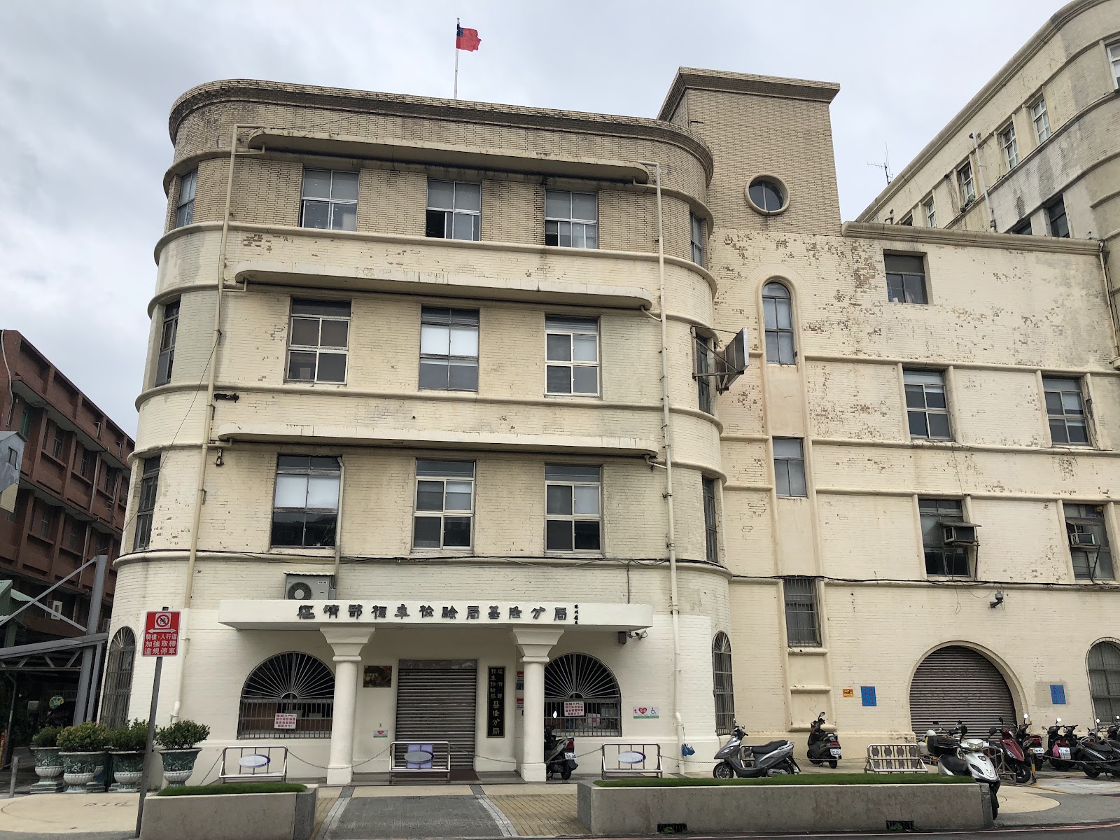 "1930年代留下來的日式建築,主体保存相當完整,內部為港務局北部航務中心,氣象站,關務署辦公室,己變更很多。基隆市政府在基站火車站地區都更,特別將這些建築保存。