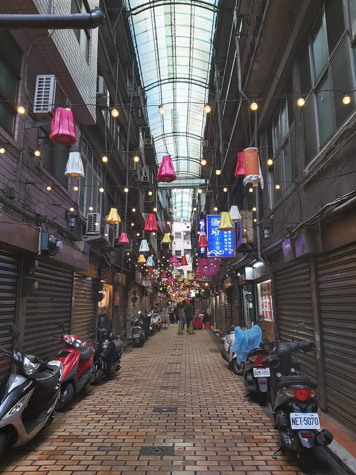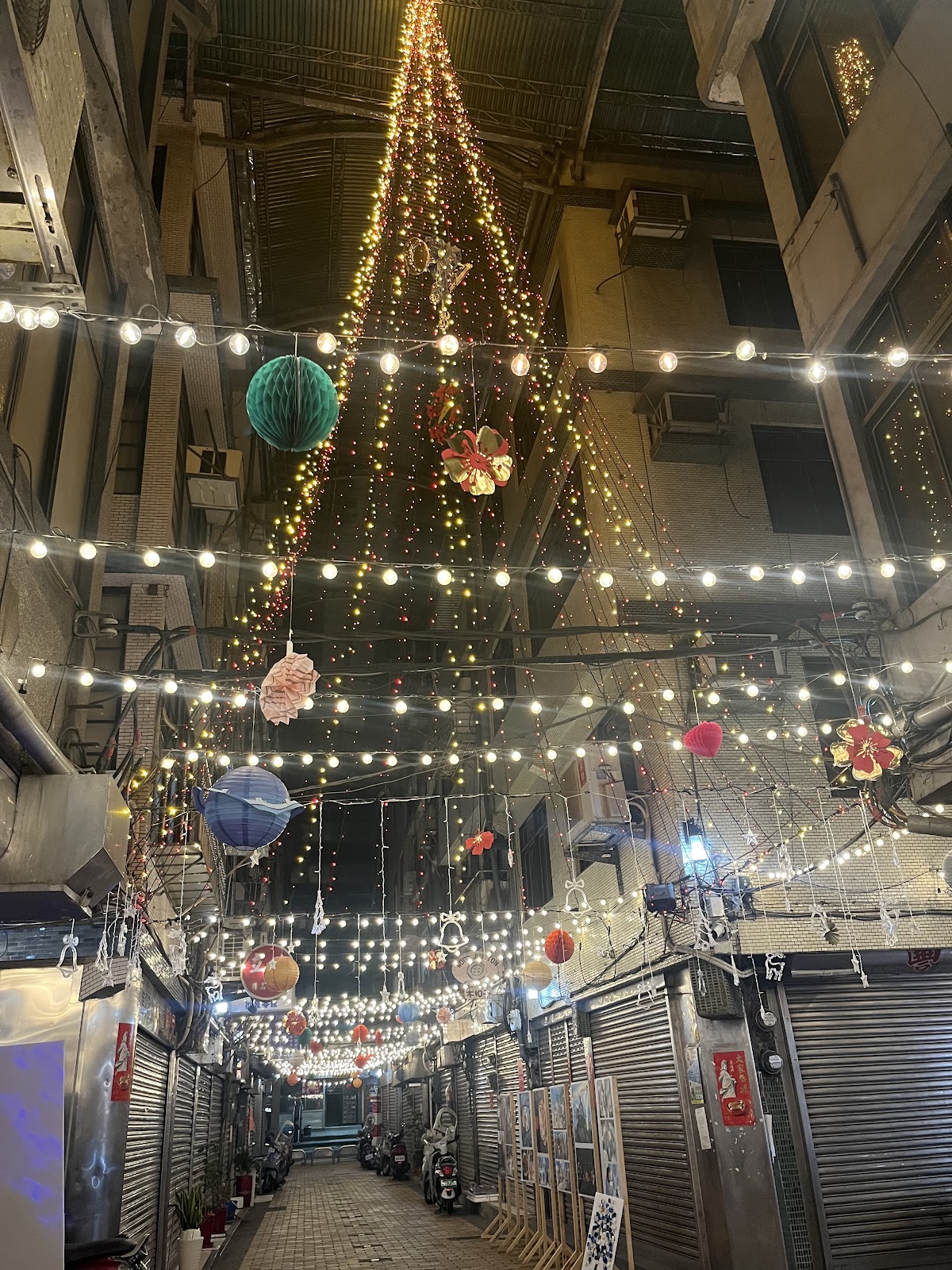 範圍很小,十字型的街區。拱形雨遮設計很像日本的商店街,如此美的燈飾,氣氛真的美邁。可惜很多店都沒開,人潮也是稀稀落落。