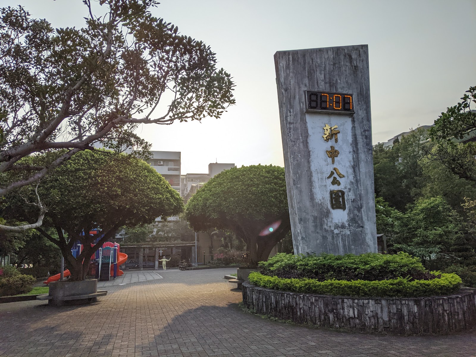 我總覺得社區公園與社區人文有很大的關聯性,新中公園在民生社區裏,一切看起來就是簡單樸實,幾棵大樹用水泥框圍起來,看起來像大型盆栽,也算是自有風格。