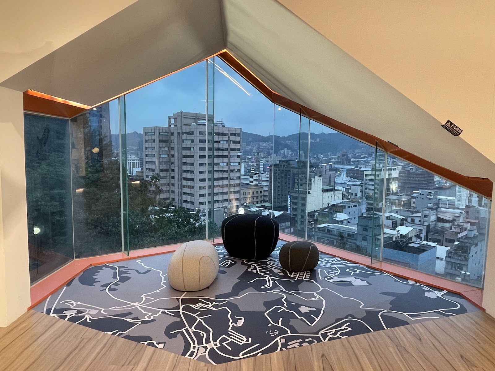 繼續往下到4樓,是“鳶”高層景觀書店,一進門左側是聞,利用各種不同的味道,認識基隆巷弄,內部還有各種“不規則落地玻璃窗台”,能坐臥的閱讀空間,超級喜歡!(最中央有台精露萃取儀器)