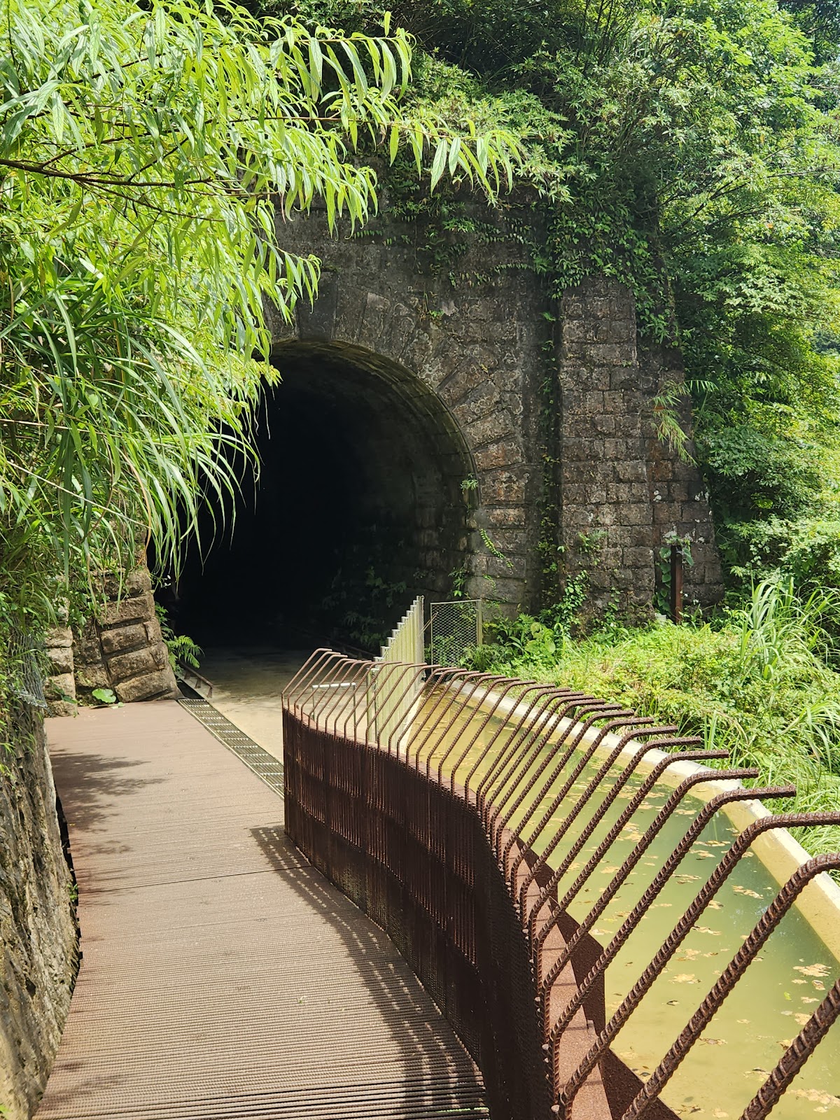 是百年前礦業運輸用的鐵道,這是一場可以穿越「百年時空」的體驗,在行走隧道的道路上,可以經歷熱帶雨林和流水瀑布,再加上隧道內有「台灣原生種的蝙蝠🦇」,除了用行走的方式外,也可以租借YouBike,只是在隧道內需要用牽行的方式,才不會嚇到「蝙蝠🦇」,這是種對生態的尊重,