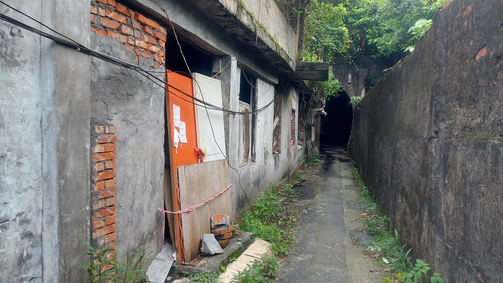 基隆市八尺門五分車隧道遺址,見證東北角的礦業歷史,但市府剛完成整修,大推和平島廊帶觀光,隧道尾端通往北寧路三十一巷卻被整棟收容流浪狗的鐵皮違建擋道。