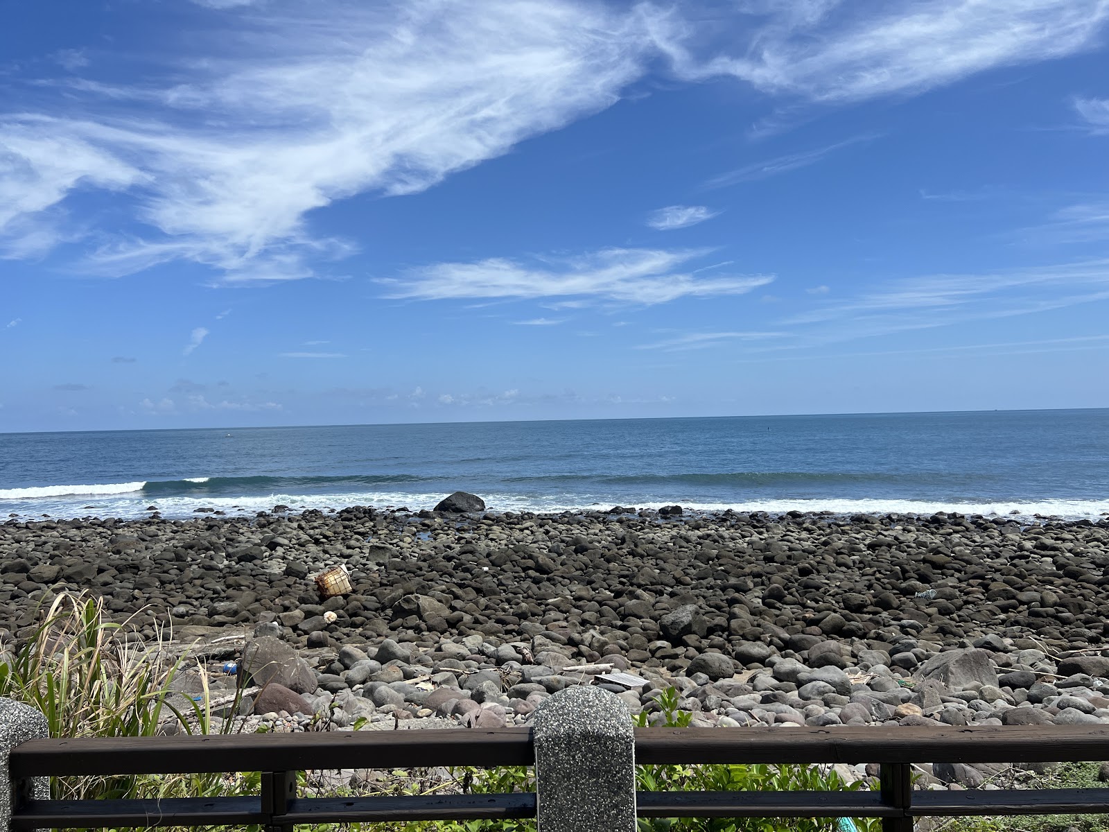 看到路邊這麼多人來拍照就知道,原來是號稱全台最美公車站的跳石站,果然海景無敵啊!!