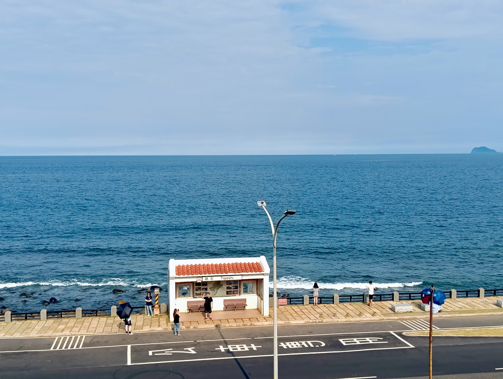 如果你不一定堅持要從高點徃下拍公車站牌,不妨徃金山方向走2個公車站牌,試試“廖添丁廟公車站”的背後海景,也是很不錯的。