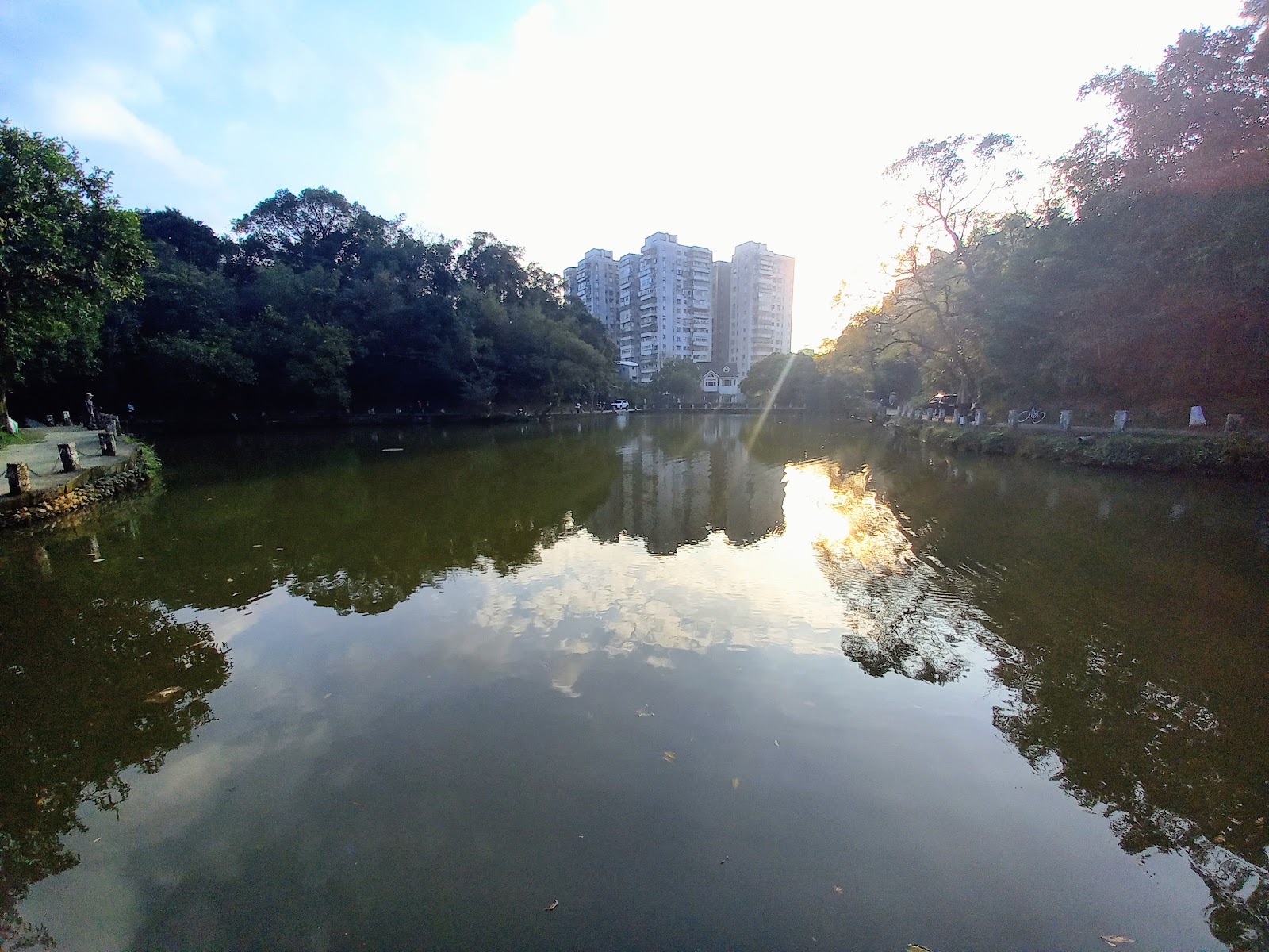 ㄧ個在城市中的埤塘,許多人在此垂釣,享受寧謐的感覺