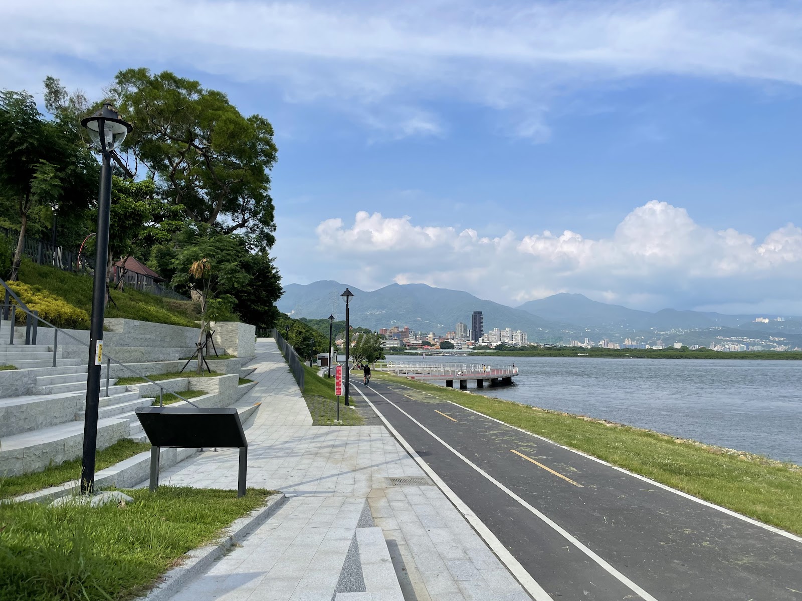 釣魚的人很多,平台很寬大,視野遼闊,假日此條自行車站很多人騎車,散步的人也很多,可通到八里 、關渡、 淡水,沿途沒有水廁,目前河岸旁還在整建,希望有更多的汽車停車空間及水廁。