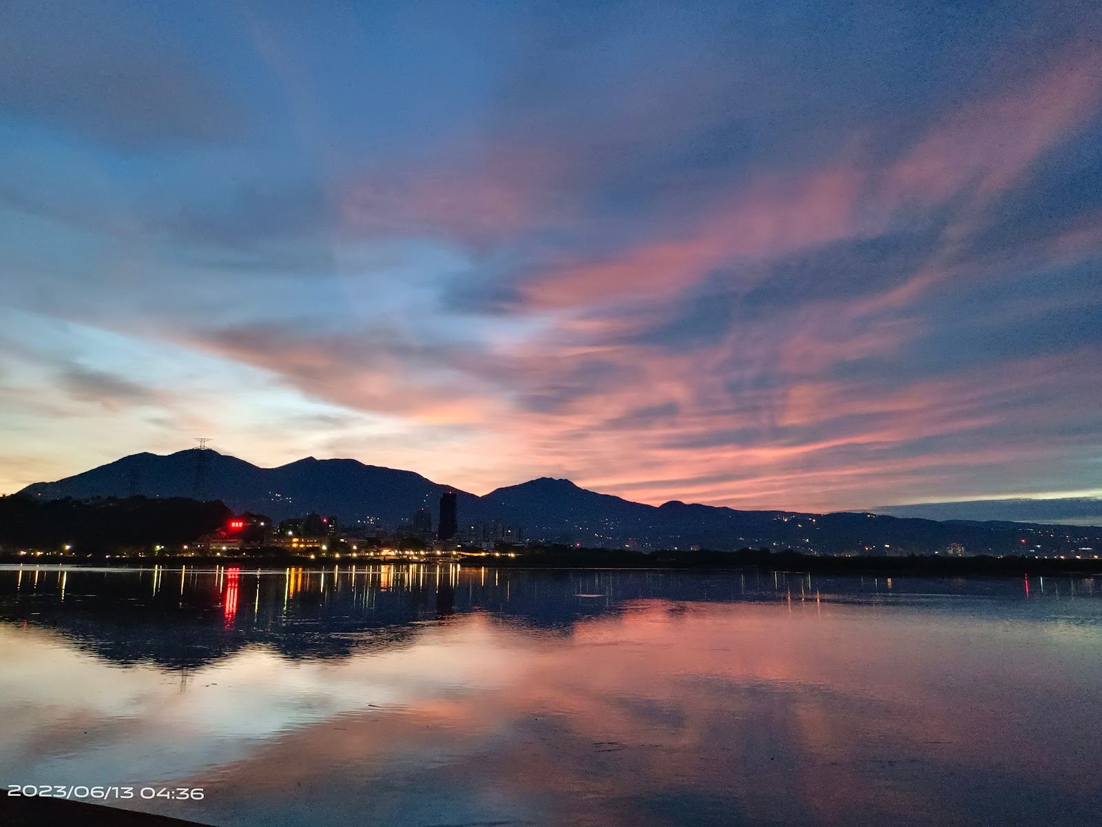 獅子頭釣魚台位在新北市五股區與八里區的交界處,正對著基隆河與淡水河匯流處,可以將大台北盆地的水系一覽無遺,超過180度的視野,不難想像清朝郁永河遊台北時會覺得台北是一個大湖。