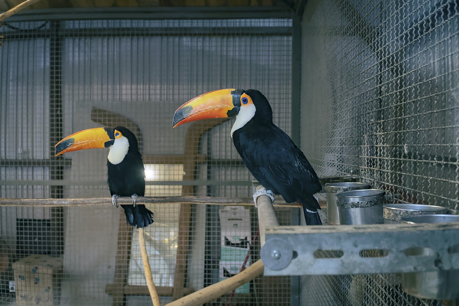 最外面那隻鸚鵡叫聲很大聲很淒厲還會一直咬門。大嘴鳥跟土撥鼠很可愛,土撥鼠翻肚曬太陽很可愛。
