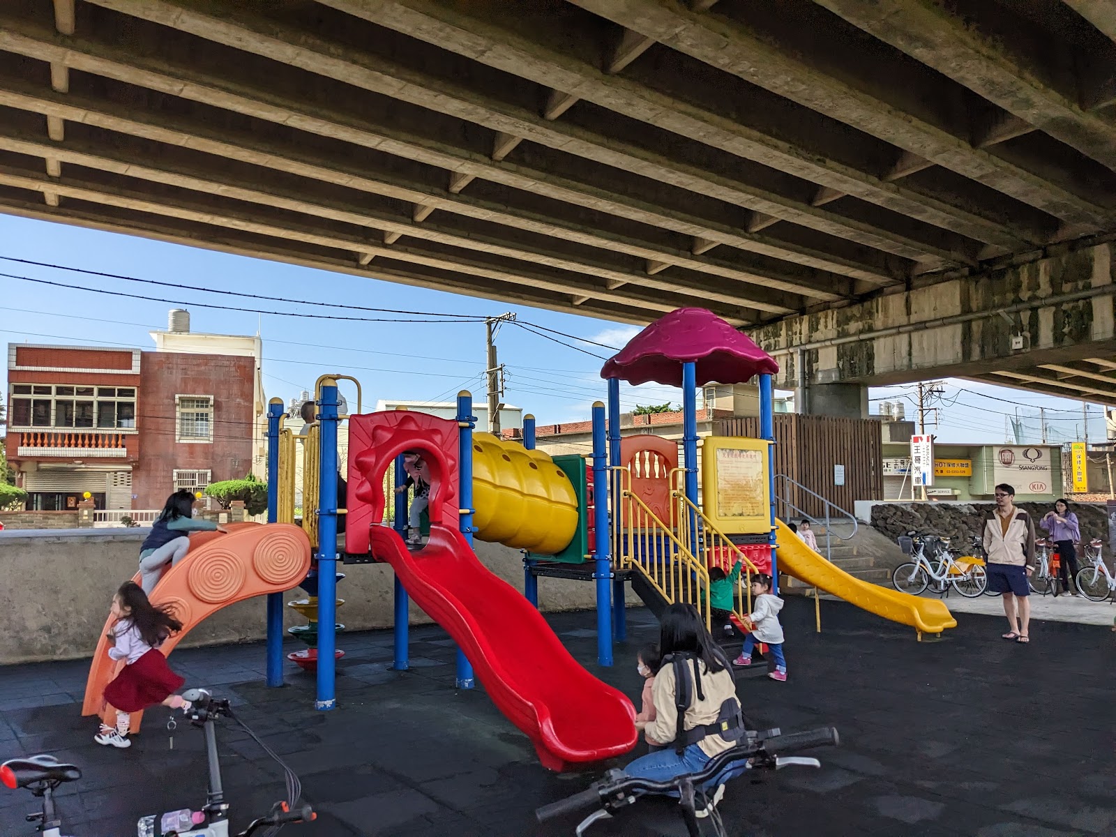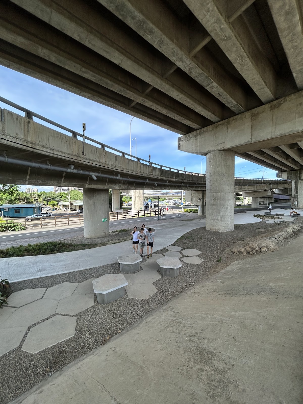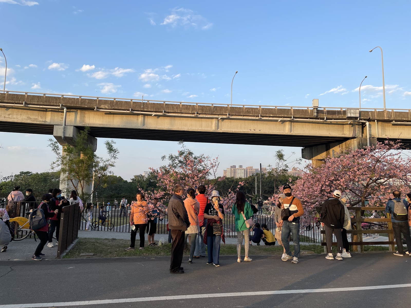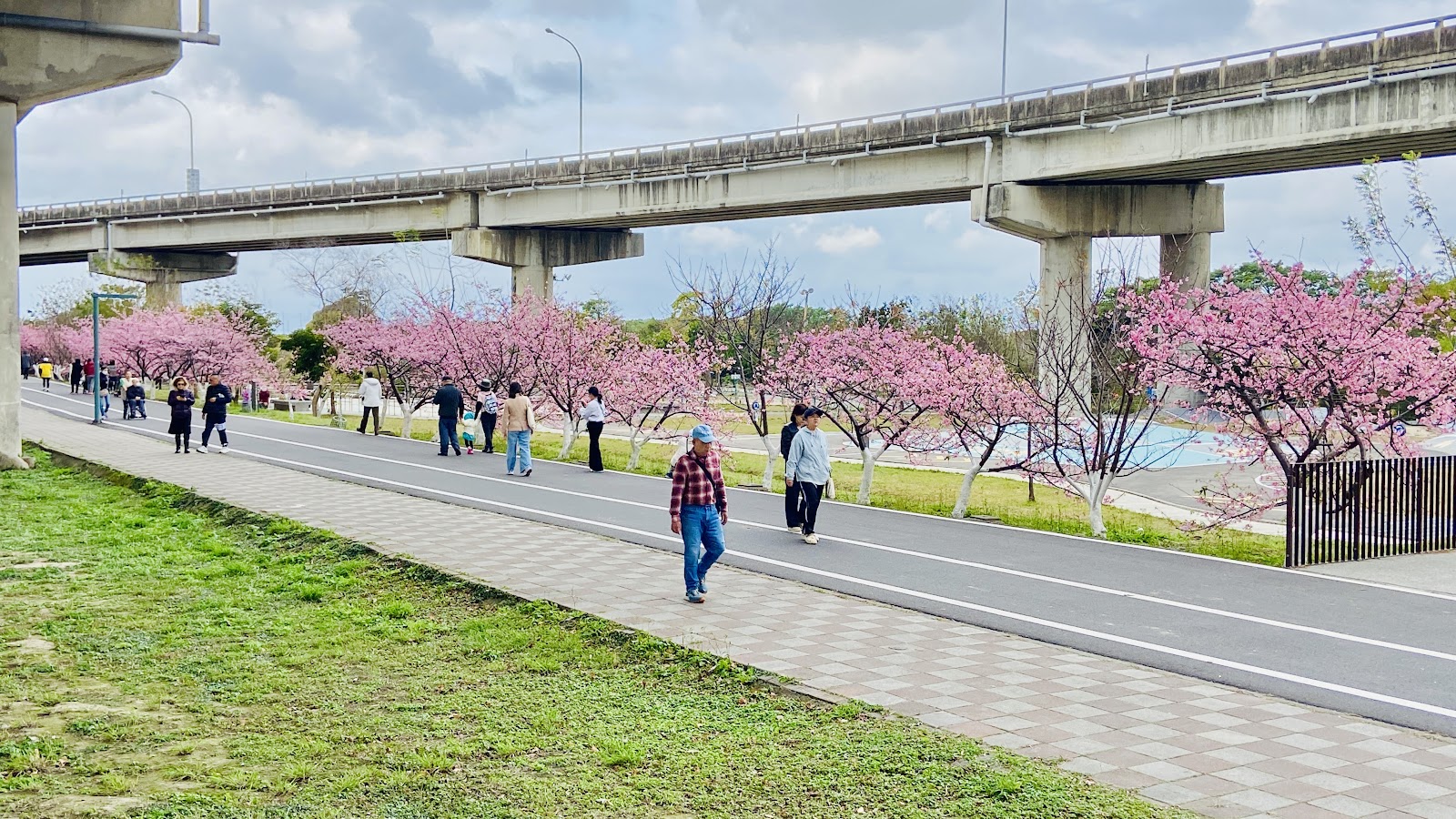 在橋墩下的步道,有停車場可以停車,散步就不怕刮風下雨或是艷陽高照了!途中還有廁所,也有飲水機,真的是闔家大小,老人小孩,更是寵物溜達的友好步道,重點就是還有好多好多的櫻花可以一飽眼福