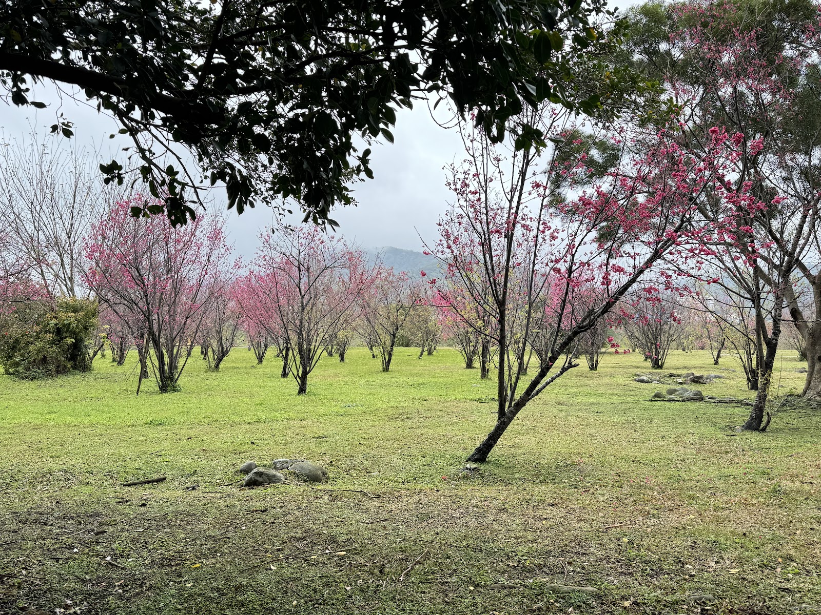 走著走著,櫻花都不會太高,所以覺得每株都很有造型。這與68快速道路竹東底端旁的紅色櫻花道是完全不一樣。