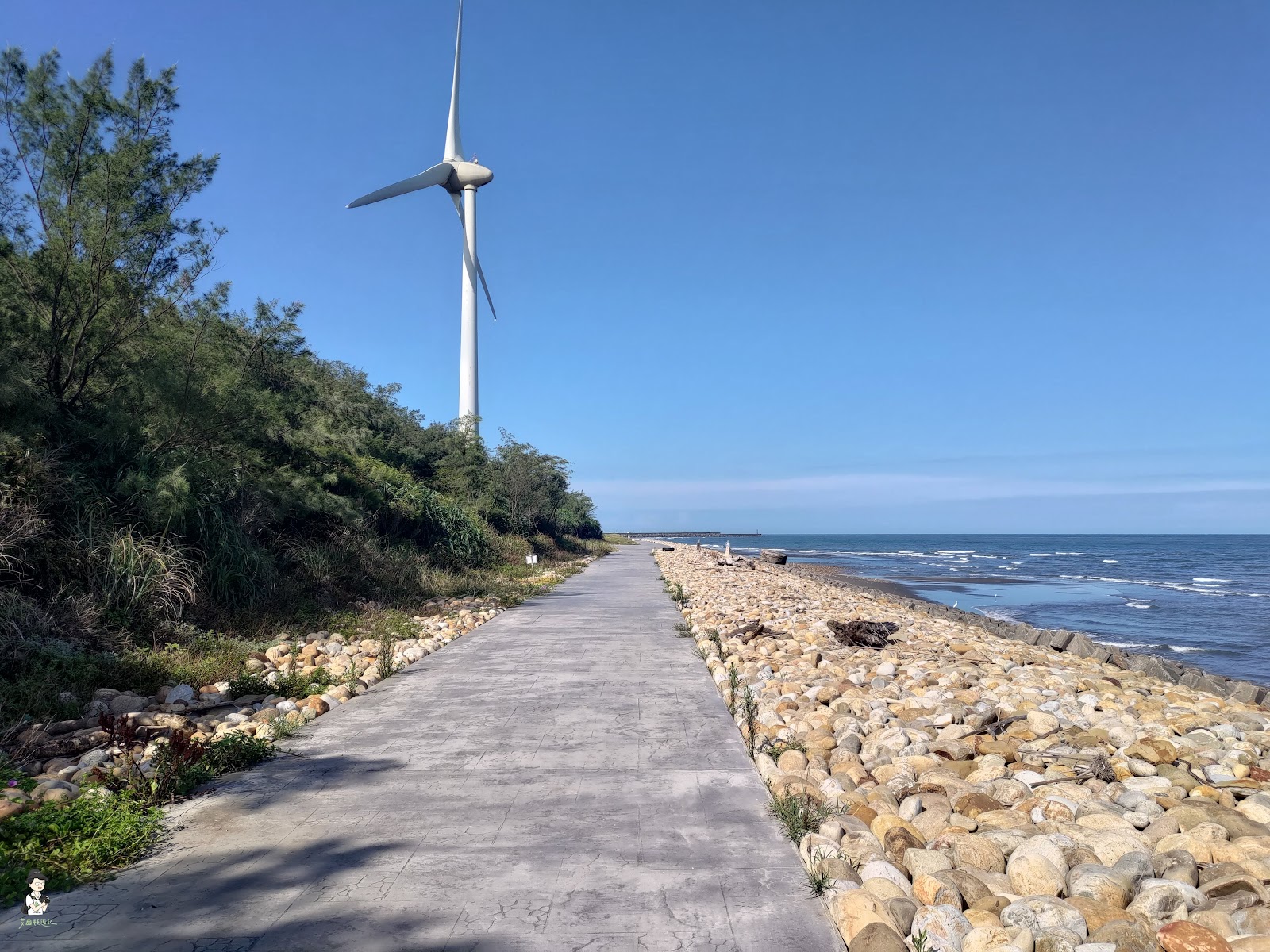 很棒的自行車道,綠蔭的比例有七成,腳踏車踩起來很舒服,車道狀況佳,地形也平坦,或在防風林內,或在海岸線旁,可串連一些大小漁港,邊騎邊欣賞海景。雖然有樹蔭,但建議夏天在清晨騎車,下午到黃昏會較多人。冬天應該會有強烈的季風。