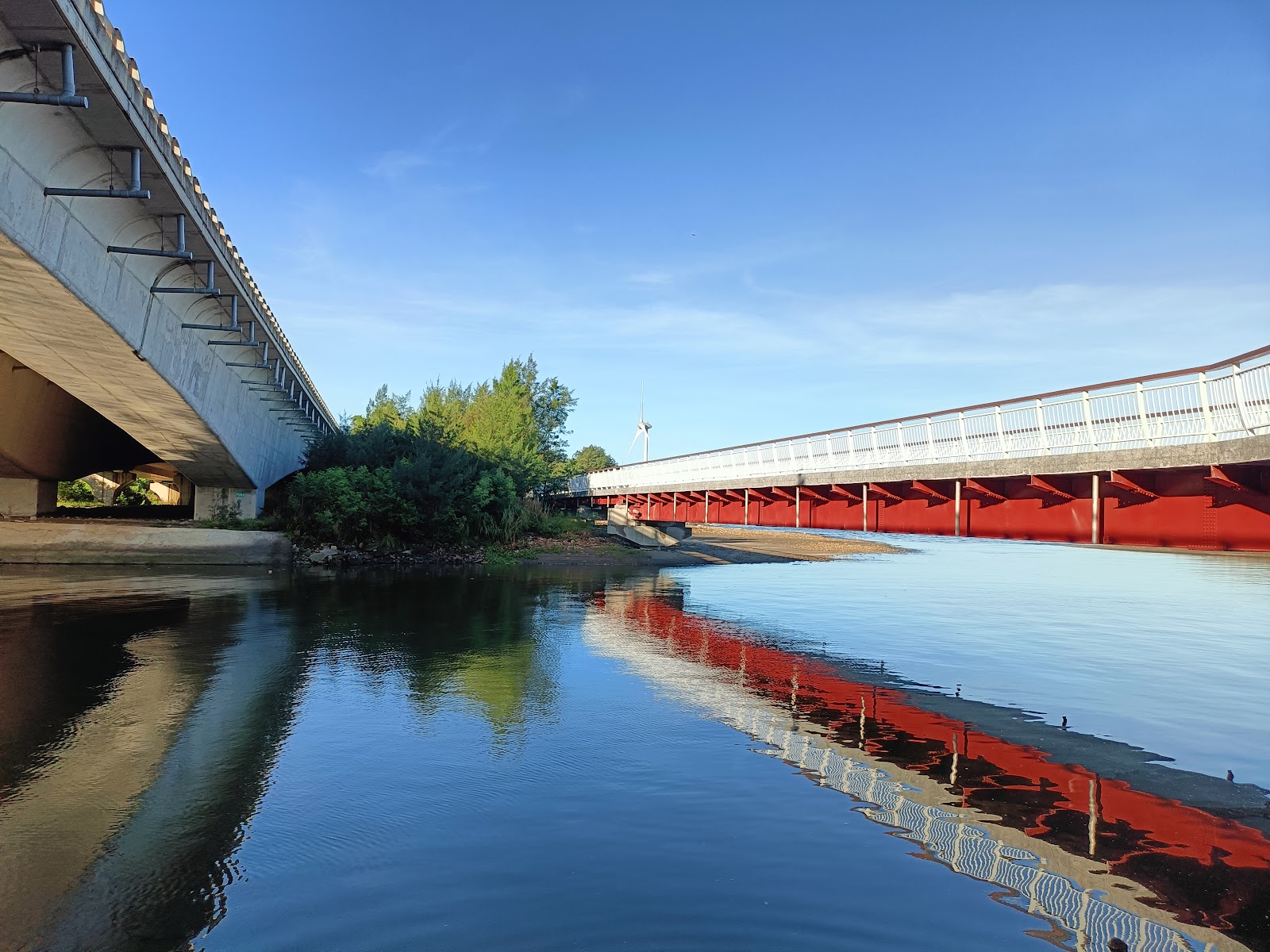 很棒的自行車道。美中不足的是過橋後往新豐的方向路面很差,騎車震到不行。設計車道路面的人可能不是車友,不知道自行車的需求。