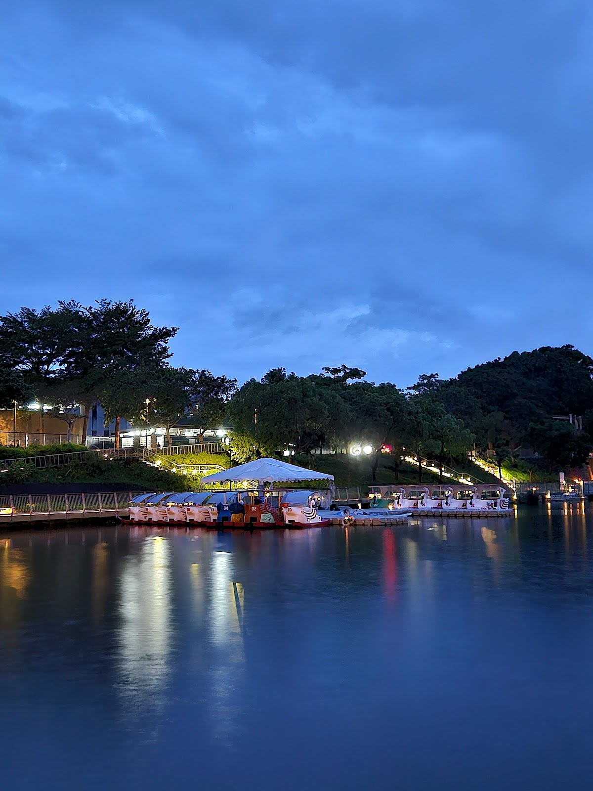 晚上燈光一亮,更是顯得浪漫的氣氛存在,湖光山色美景,吸引很多的情侶,及附近的學生族群們,到此地一遊,享受美景美好的夜晚時光。