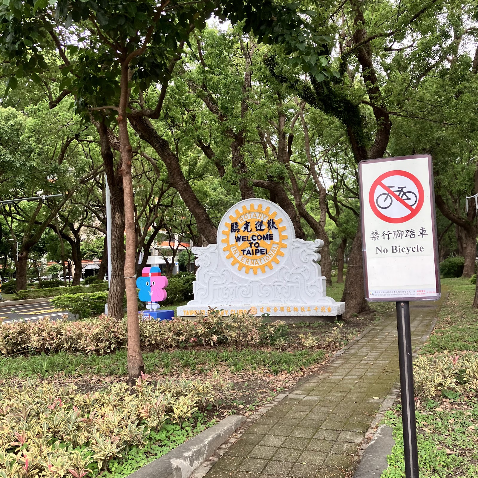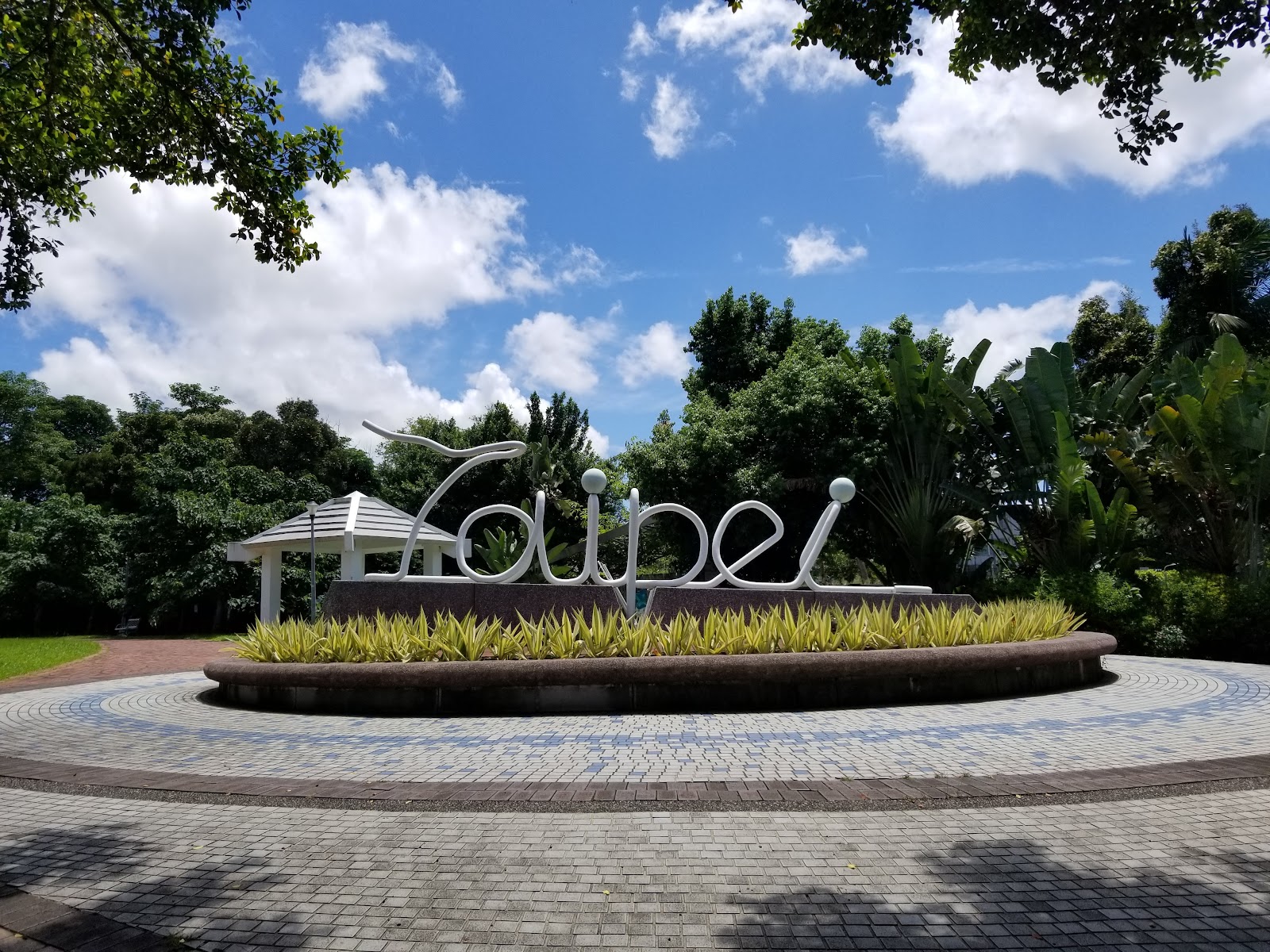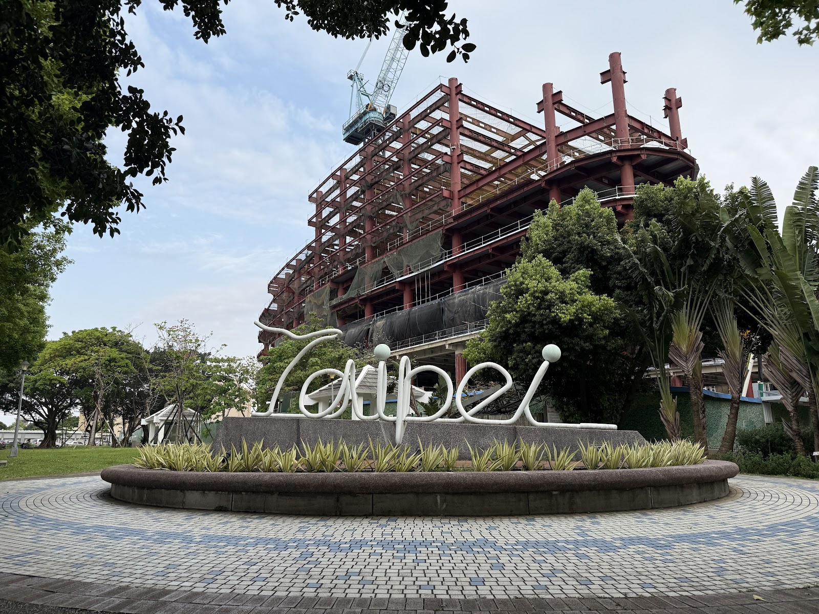 機場旁的L型公園,有Taipei 字樣裝置藝術(前身是噴水池)
