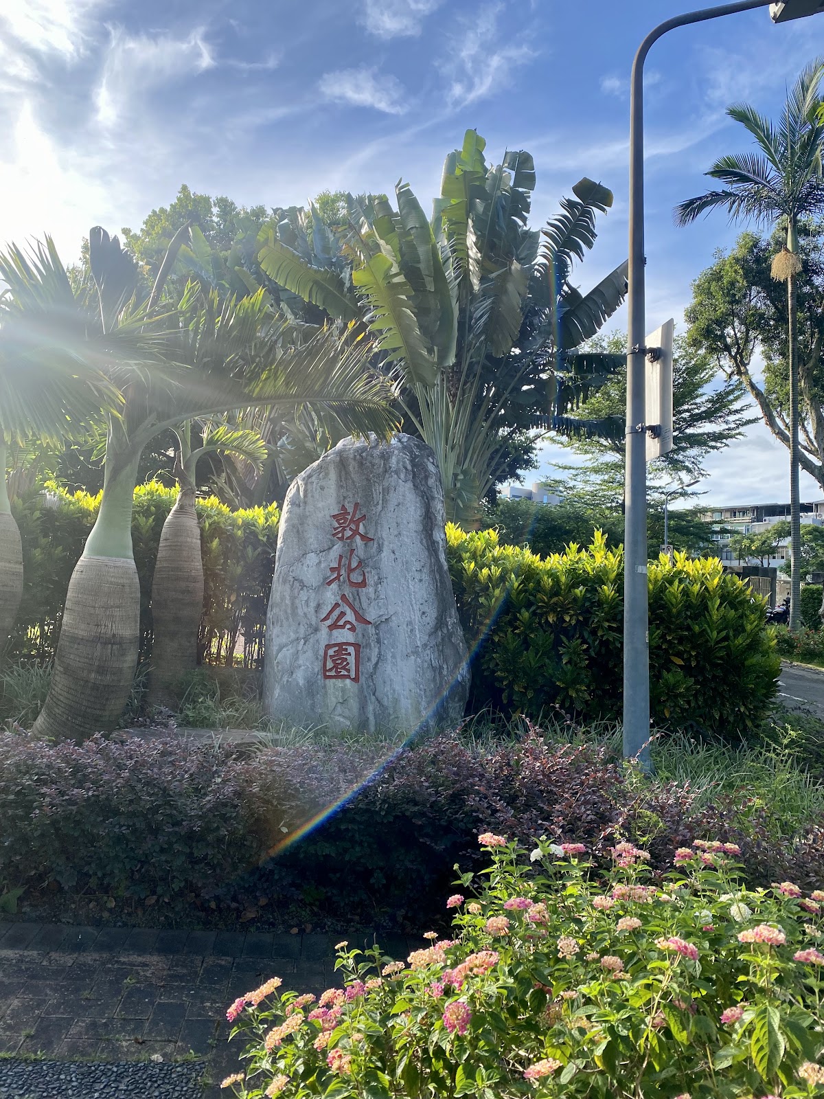 敦北公園內有很多高大的樹木,其中白千層較為少見,整體上是享受幽靜的好地方,這公園走過敦北斑馬線,也可接上敦北寬大安全島的公園步道,倘佯很有點歐美街感。