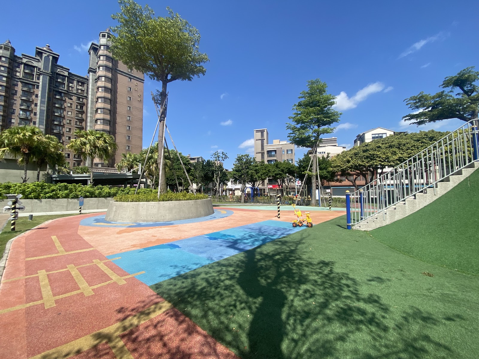 很棒的一個公園,有地下停車場位子蠻多的而且很好停收費也合理,旁邊有可以打球的籃球場球場還有天幕相對不受天氣影響,公園內有很多適合小朋友的遊樂設施,有個石頭做的溜滑梯,也有適合小小朋友的制式塑膠溜滑梯,還有盪鞦韆 蹺蹺板這些基本的遊樂設施,特別的是還有交通號誌燈可以讓小朋友騎車之外順便認識學習,遊樂區地上有鋪PU對小朋友進行保護,想跑步運動踢球的,還有操場可以活動,整體來說是附近居民活動的好選擇