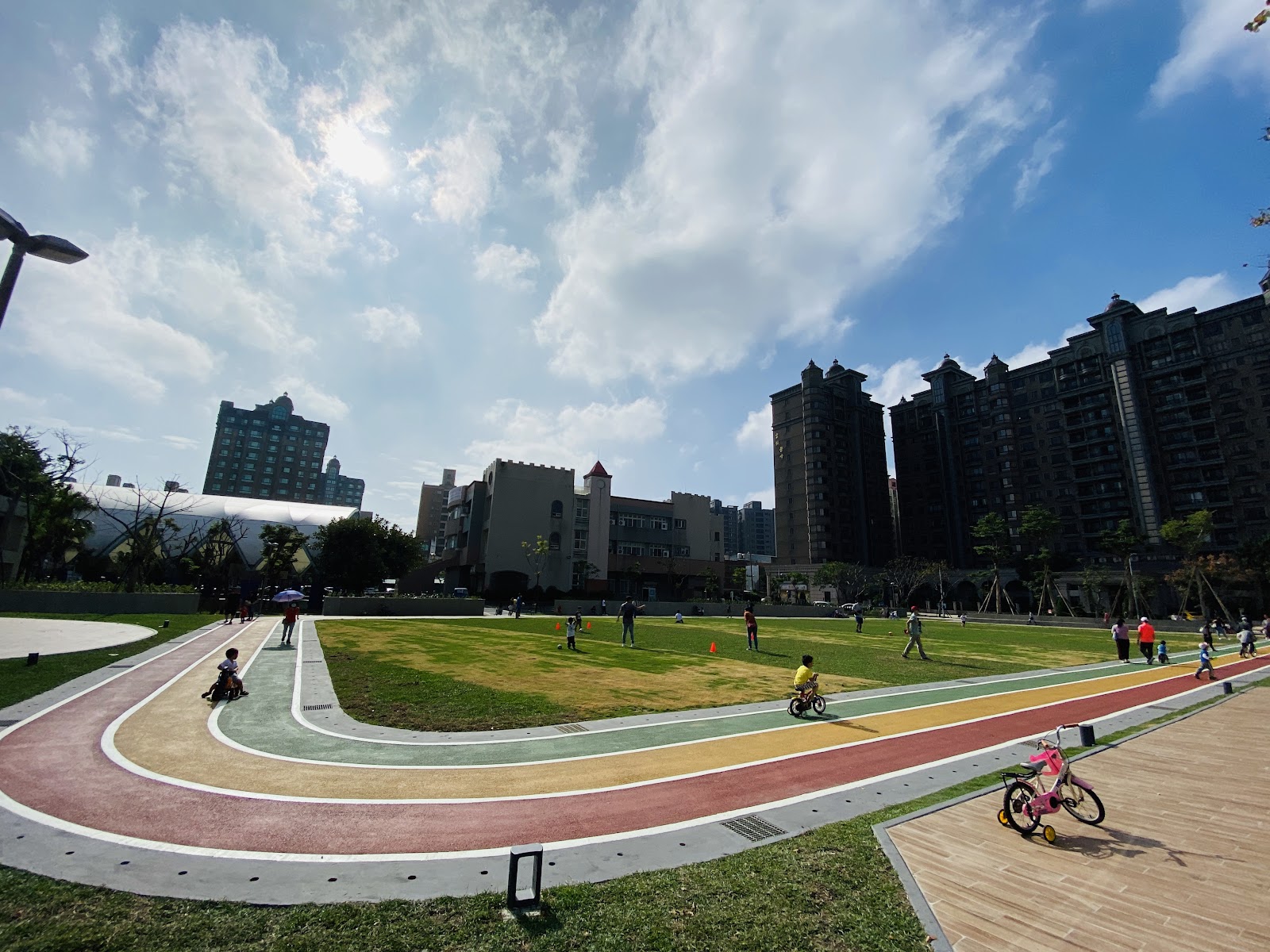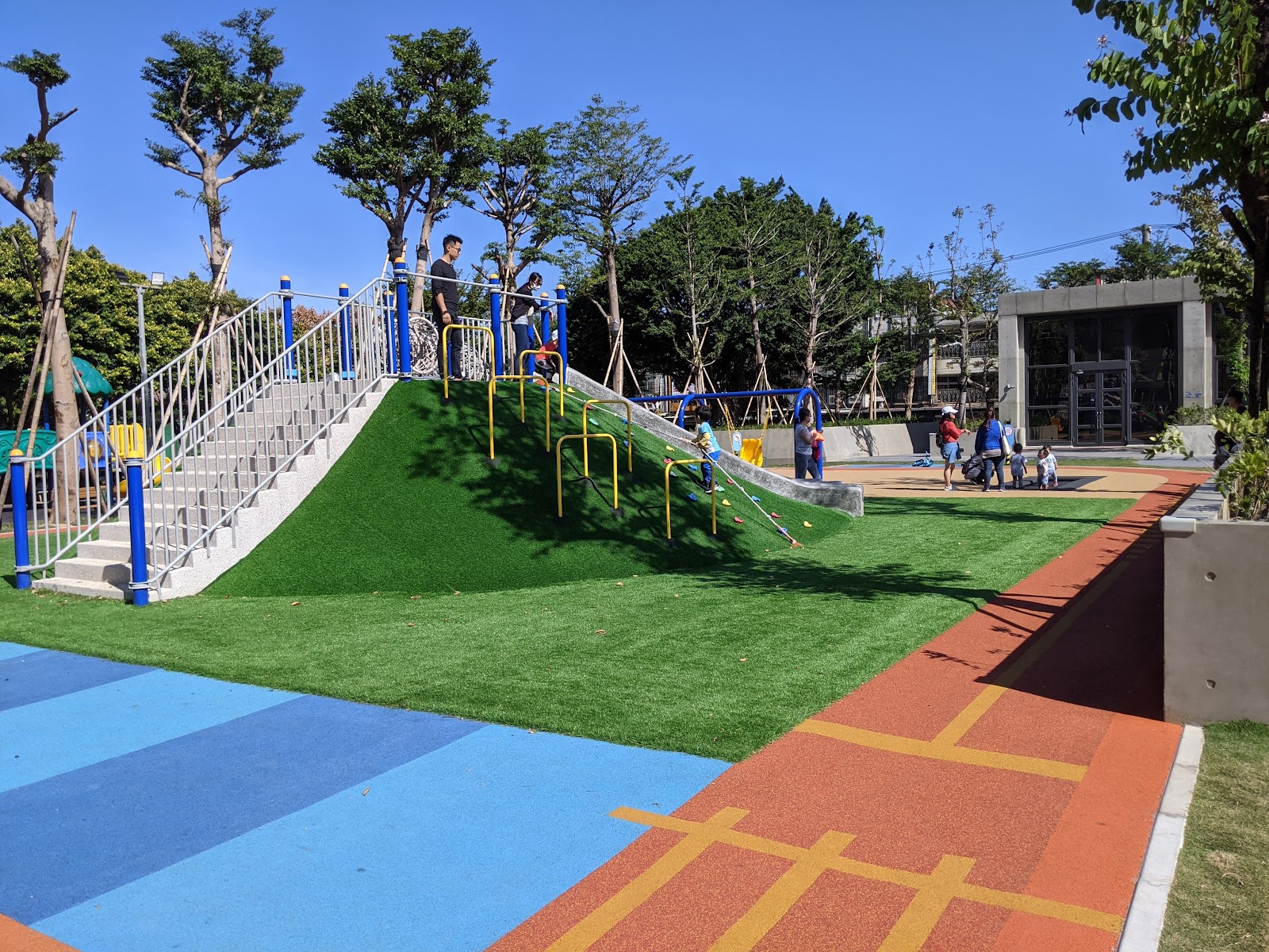 非常適合幼稚園左右的小朋友前來的公園,搭配顏色豐富的小跑道,很有趣味性。
