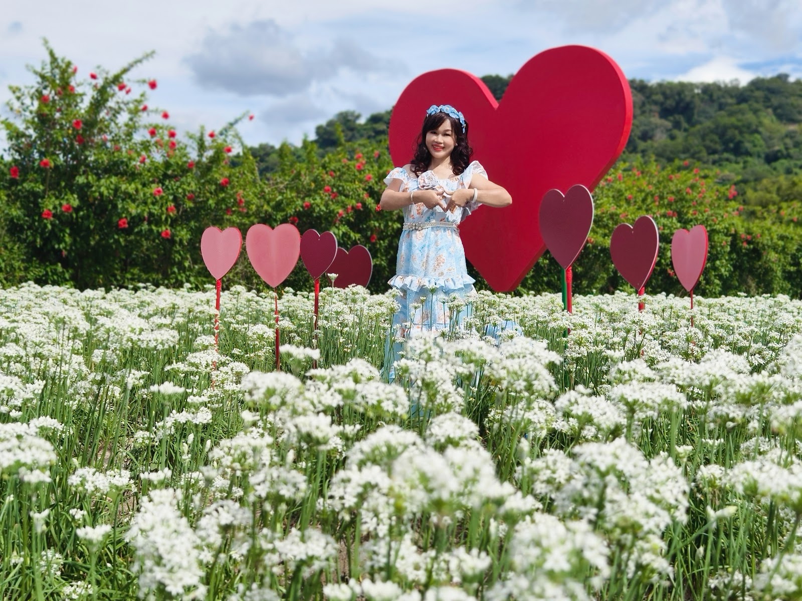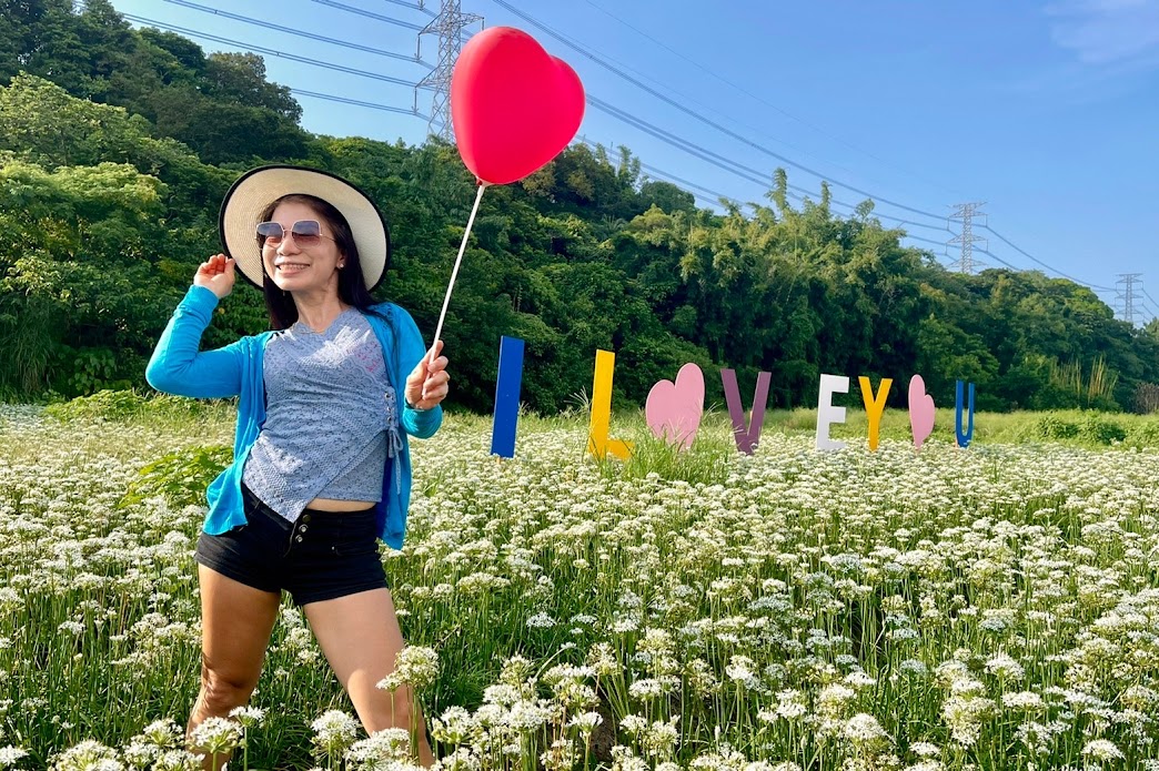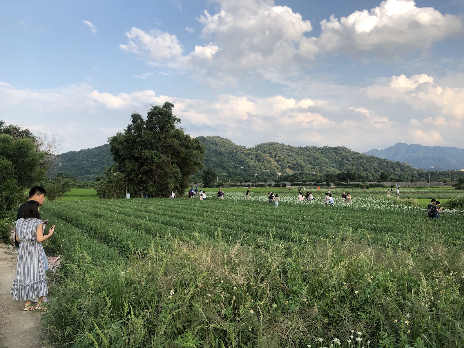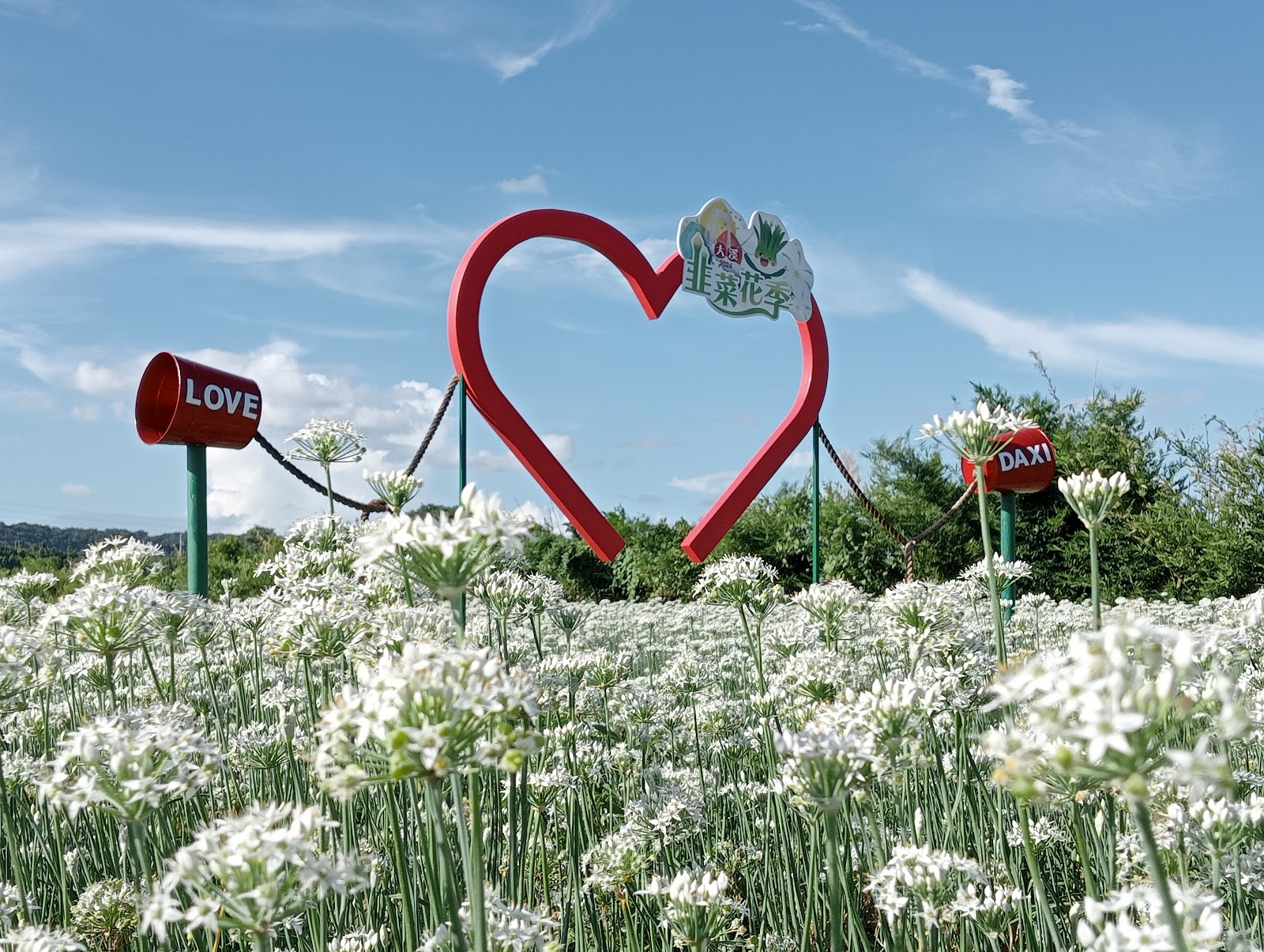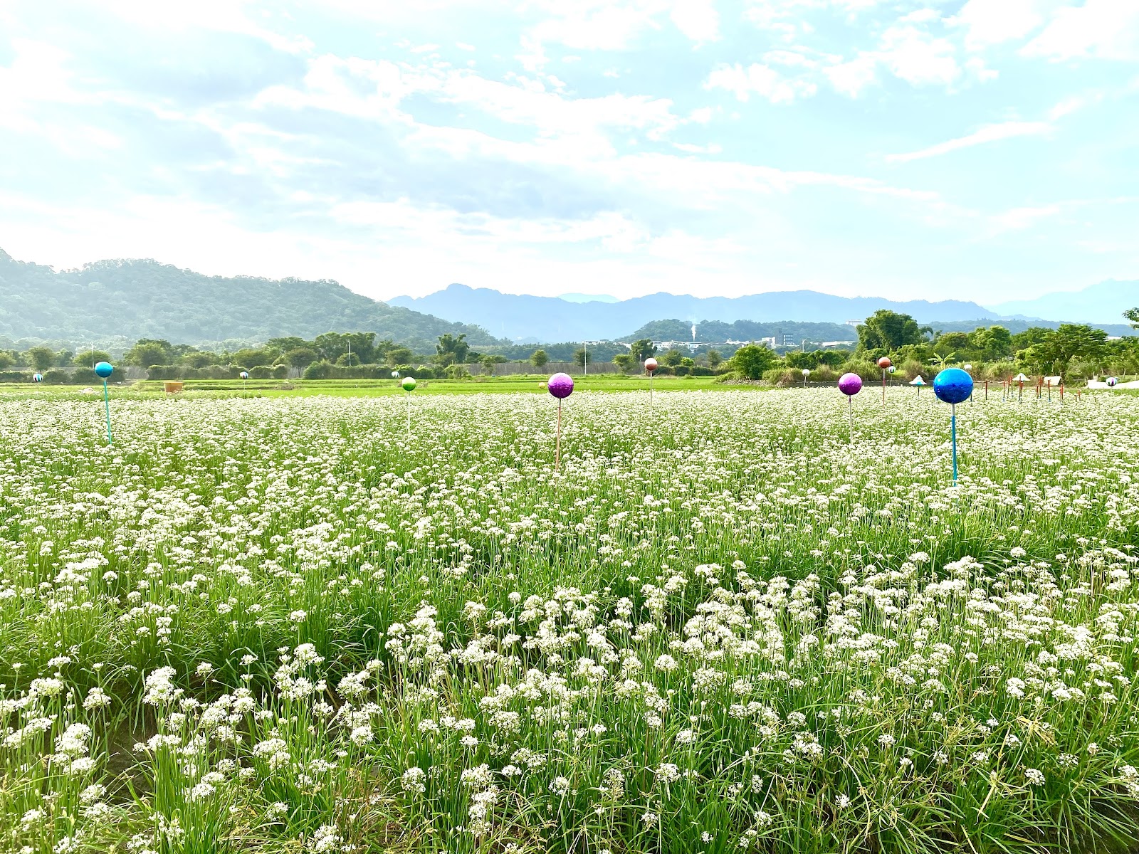 2025.9.17~附近只有一處韭菜花田開花,沒有很茂密,建議可以往北走靠近花季會場那邊,應該會有比較多的韭菜花田。