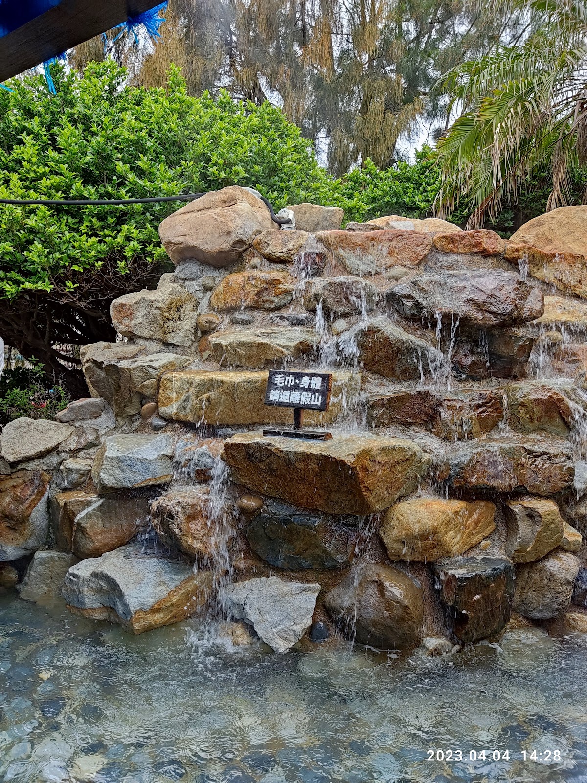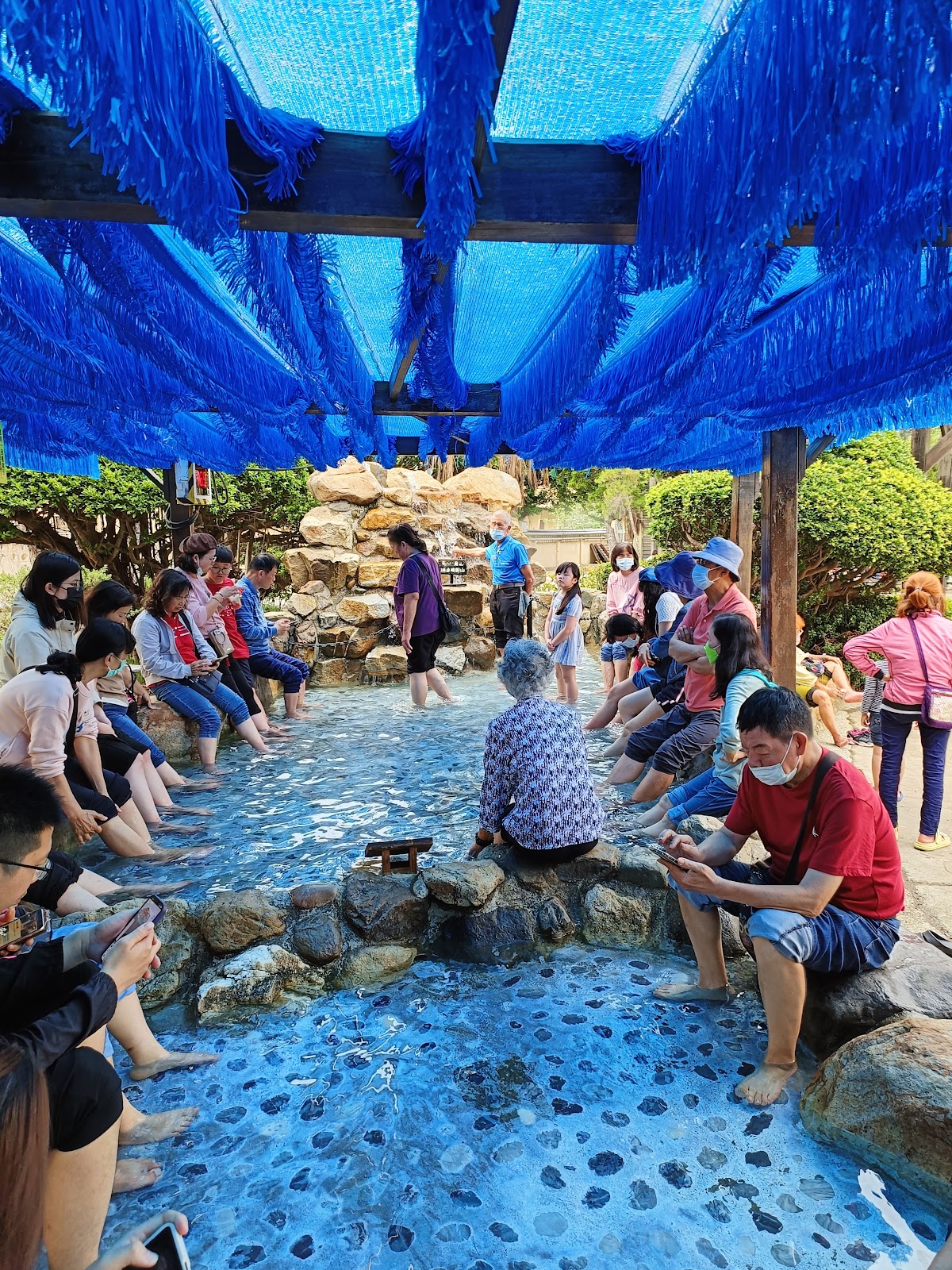 免費泡腳,泡完皮膚變很滑欸!靠近假山處水溫最燙