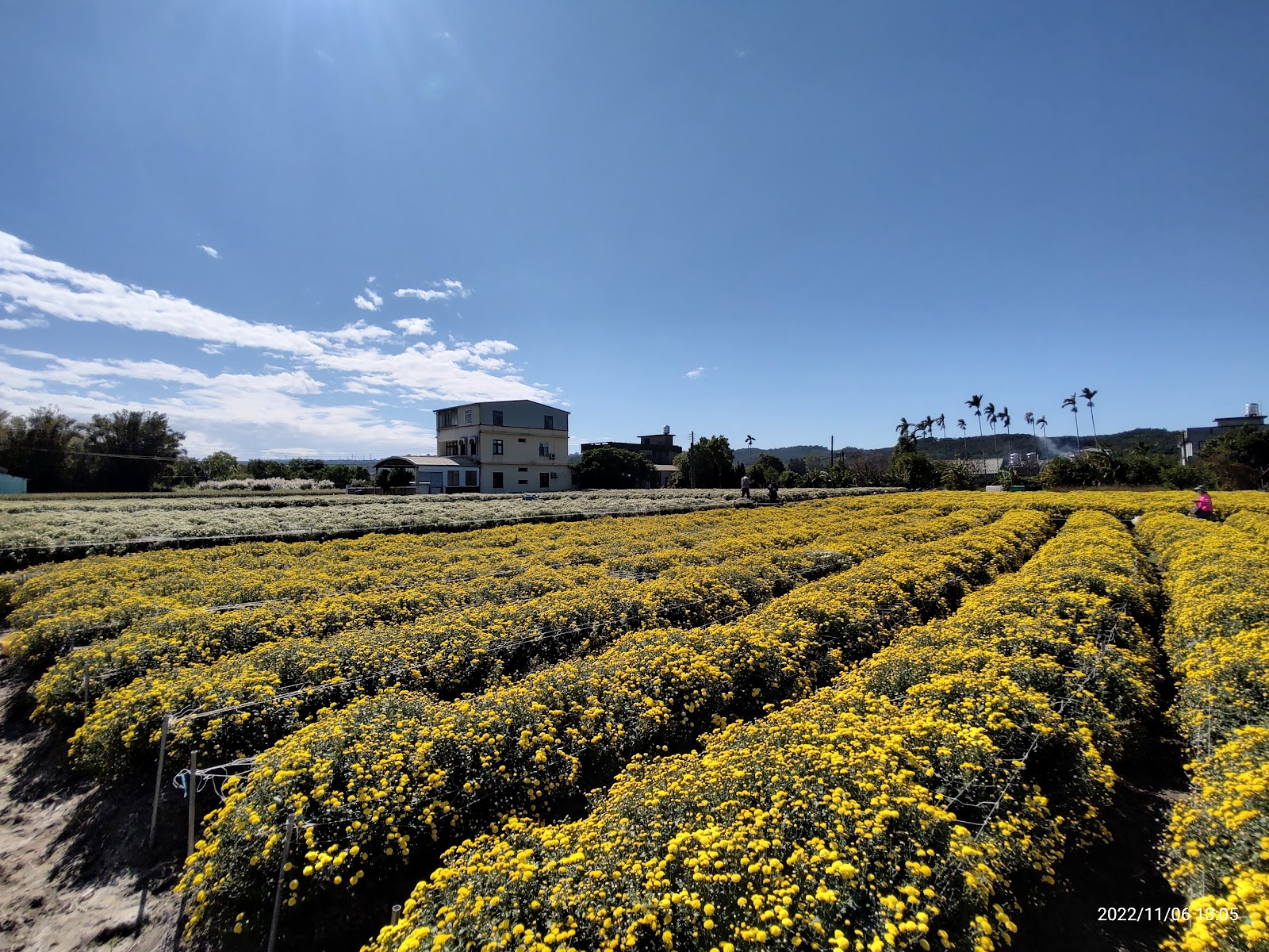 今日11/5早上來到「銅鑼杭菊的主會場」-文峰國小旁的產業道路,驚訝的「哇一聲」幾乎所有的杭菊,都在「含苞待放」的狀況,只有一區稍為有開花了些許(不到50%)….,但我們還是下車拍了些許照片留念;有點不死心查了一下Google大神,找到了「九湖農場」的位置….情況還是差不多,經詢問廠家,她們的解釋是「因為暖冬的影響」天氣一直「高溫不冷」所以杭菊的生長速度變慢了,所以花期也跟著延後了!