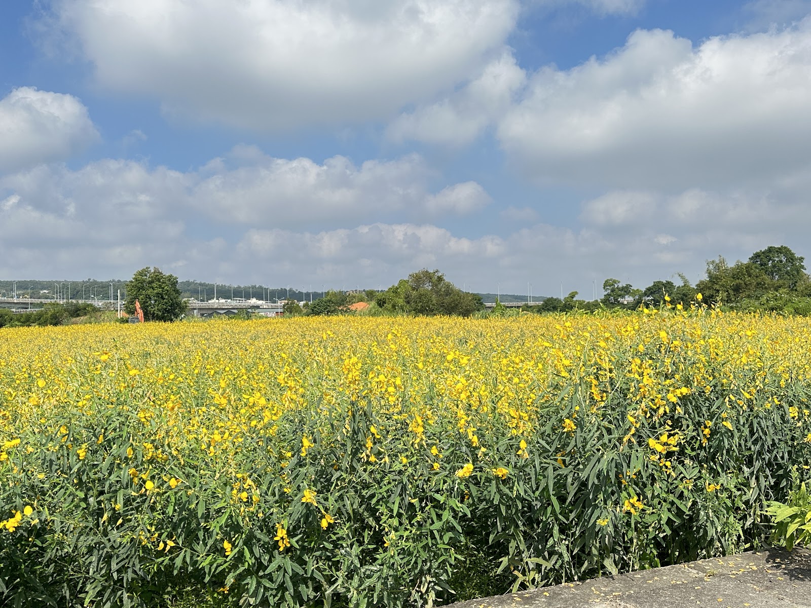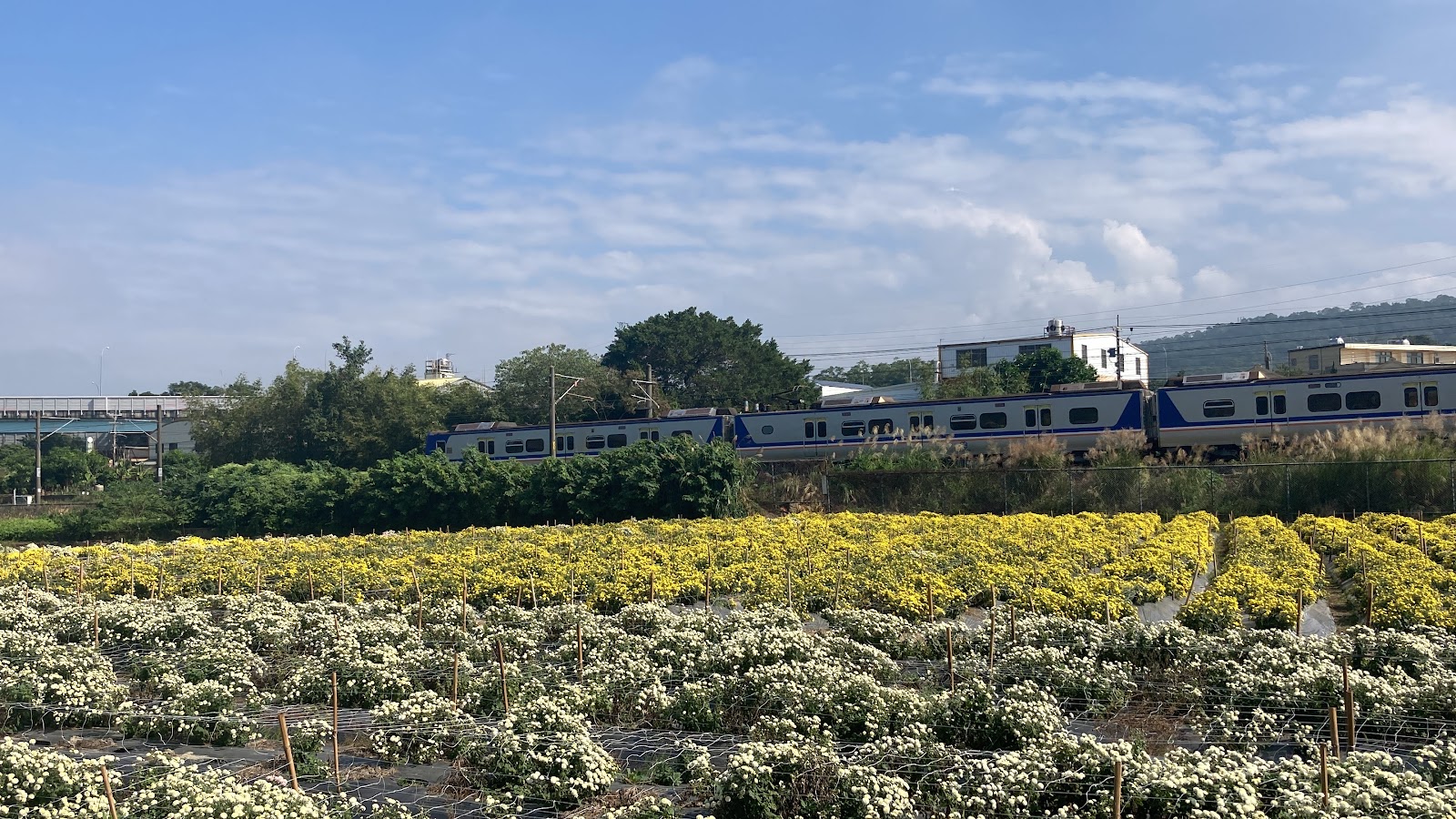 杭菊開的蠻多的,也買了乾杭菊回家泡!火車迷應該會喜歡這裏,因為就在鐵道旁邊