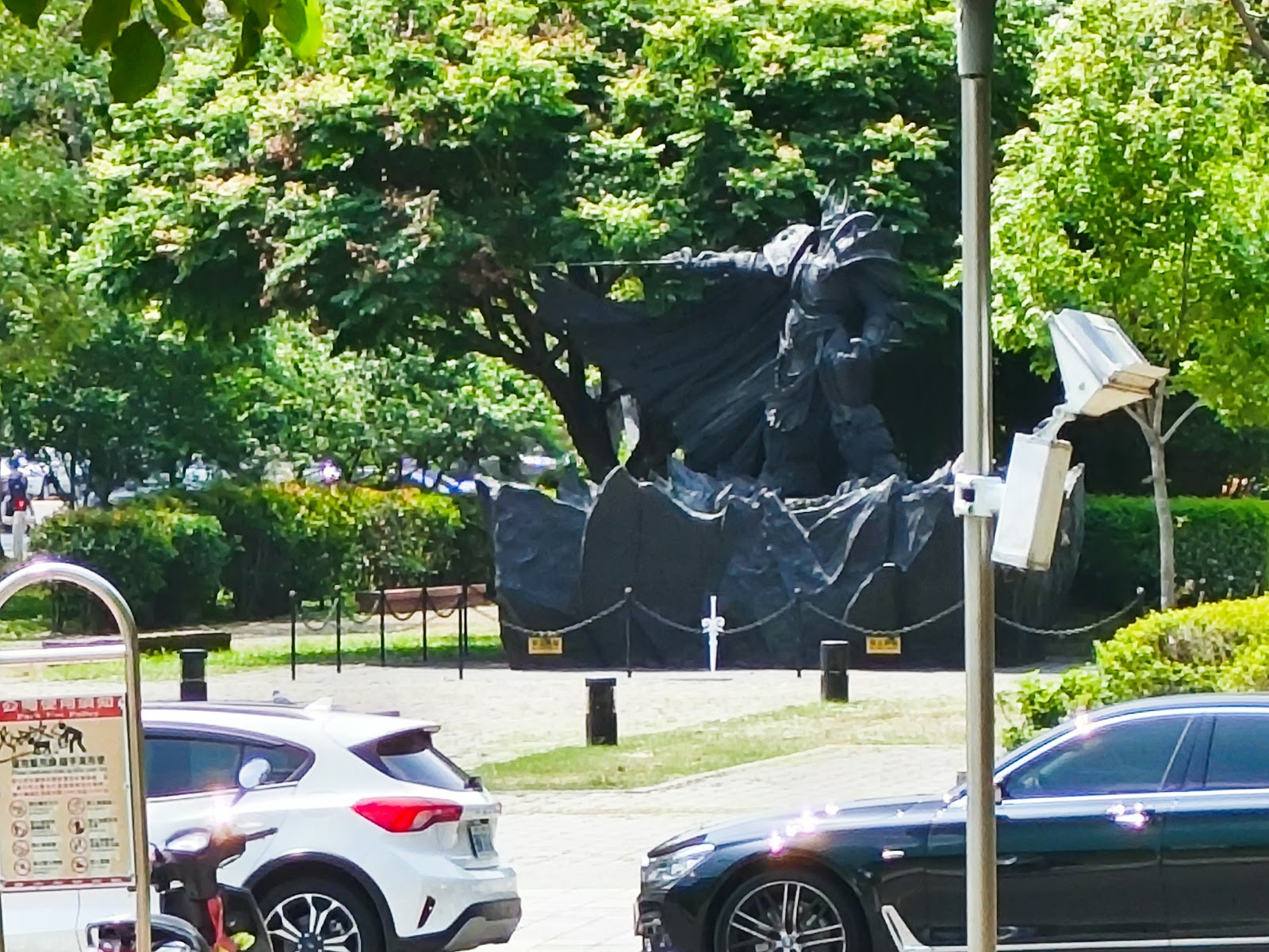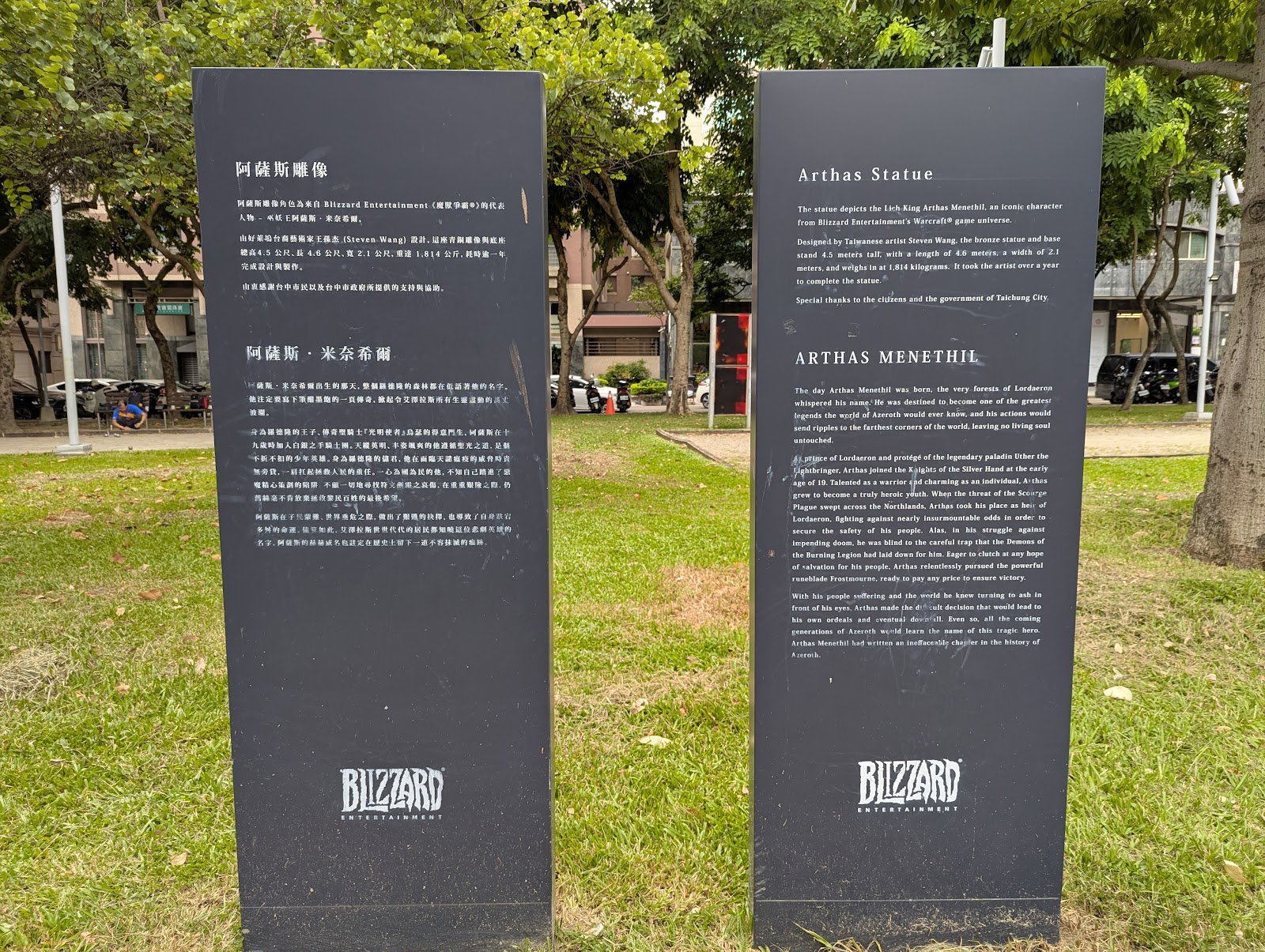 身為魔獸世界遊戲迷看到這座阿薩斯雕像會覺得有點小可惜,因為只有一座經典的巫妖王阿薩斯沒有其他的雕像,在介紹的部分也不夠詳細,既然要用了可以在用心一點,也看得出來這公園也沒什麼在維護,讓人想慕名而來的人會很失望,個人分享僅供參考。