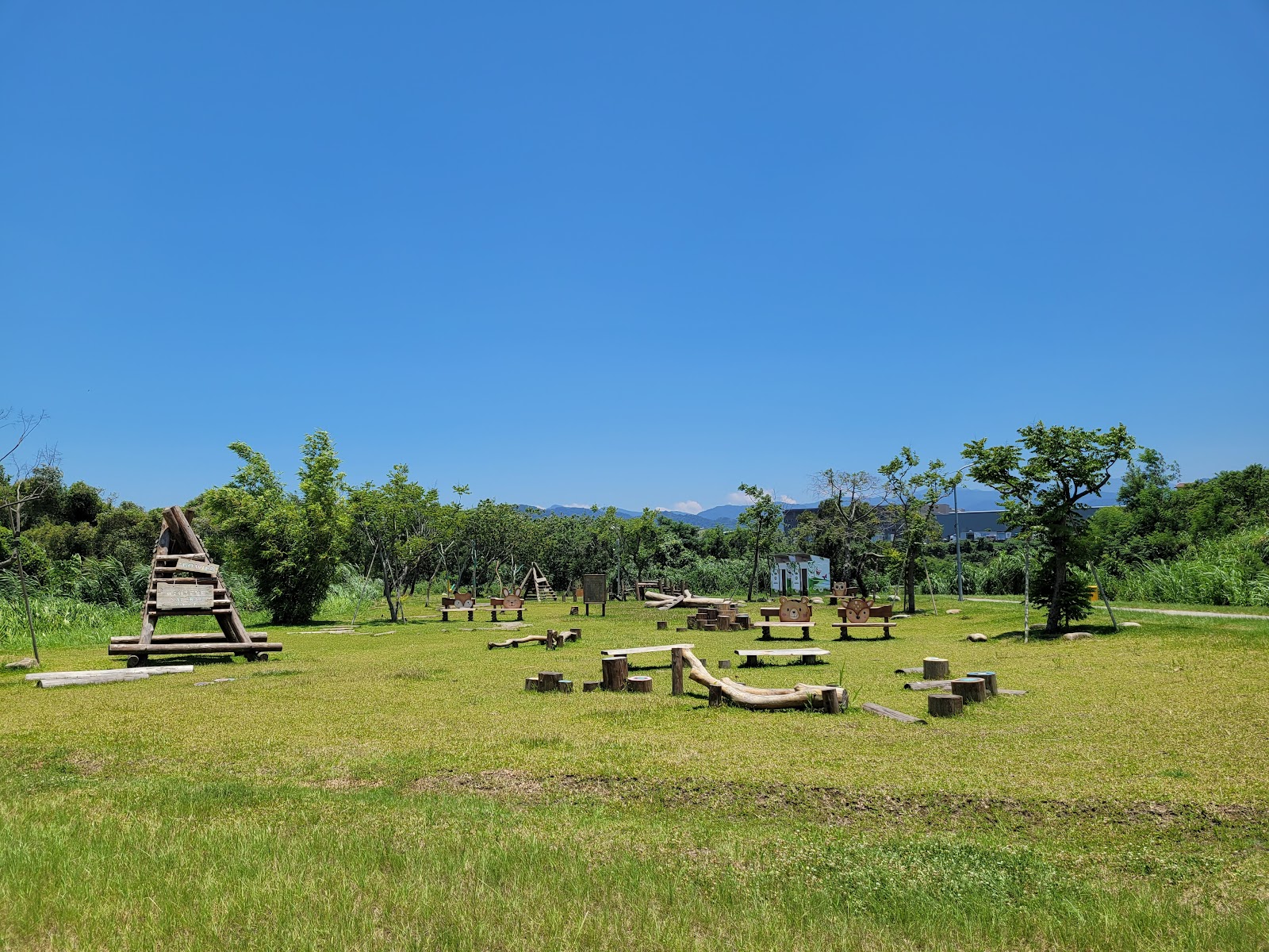 場地開闊、草地綠意盎然,路況平坦好走,適合闔家健行、野餐。停車方便,有eTag可自動扣款。