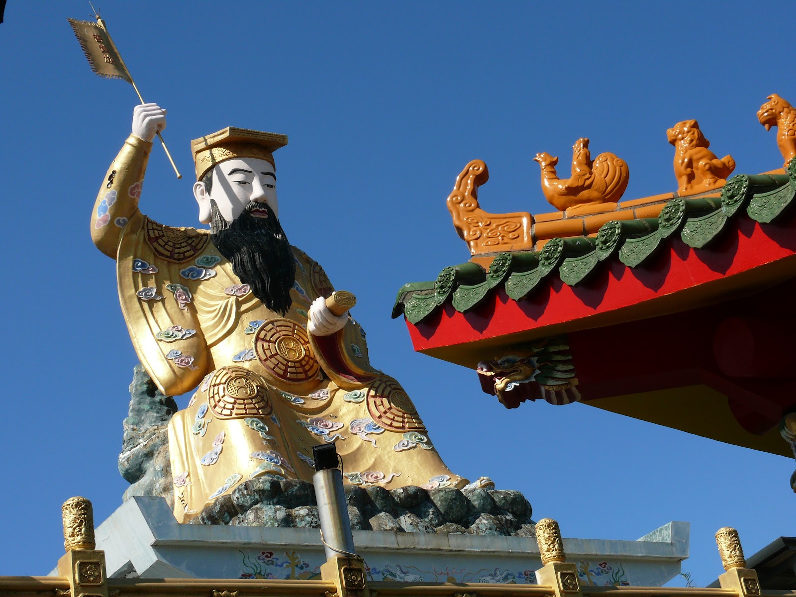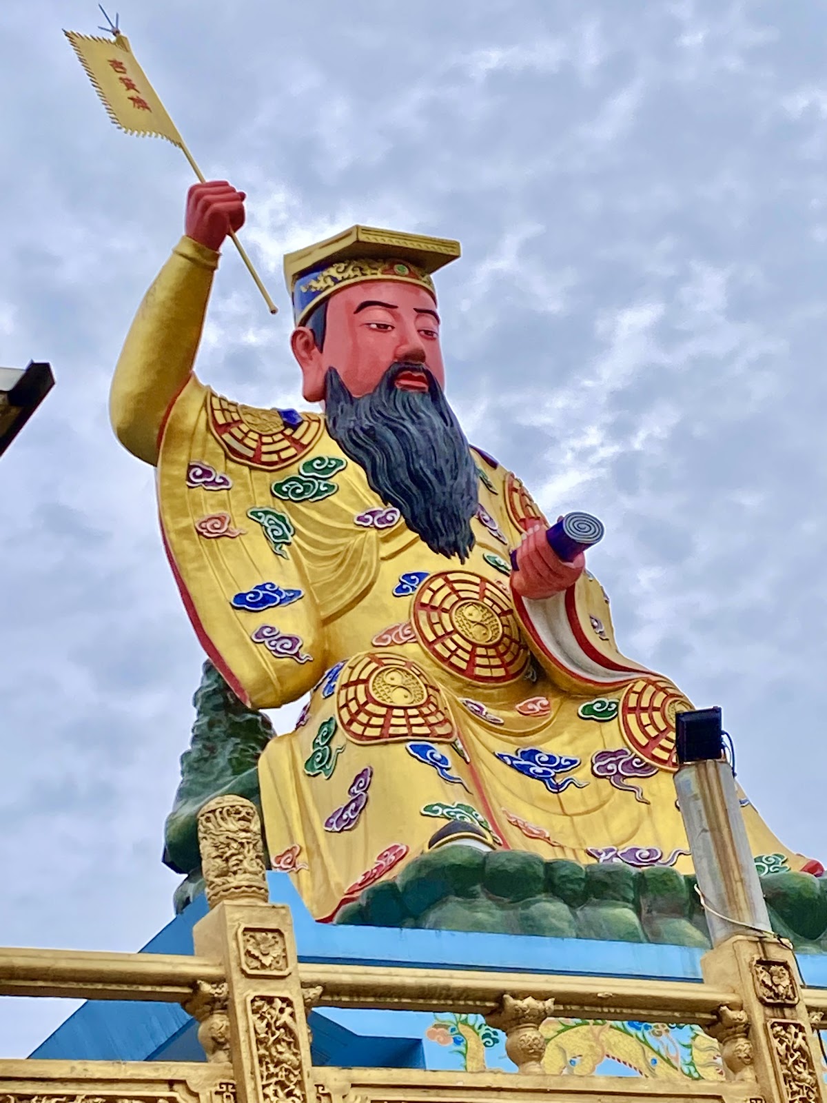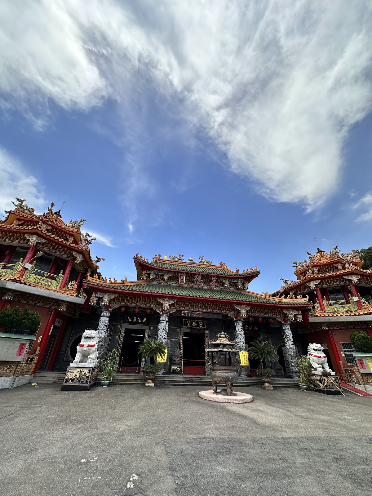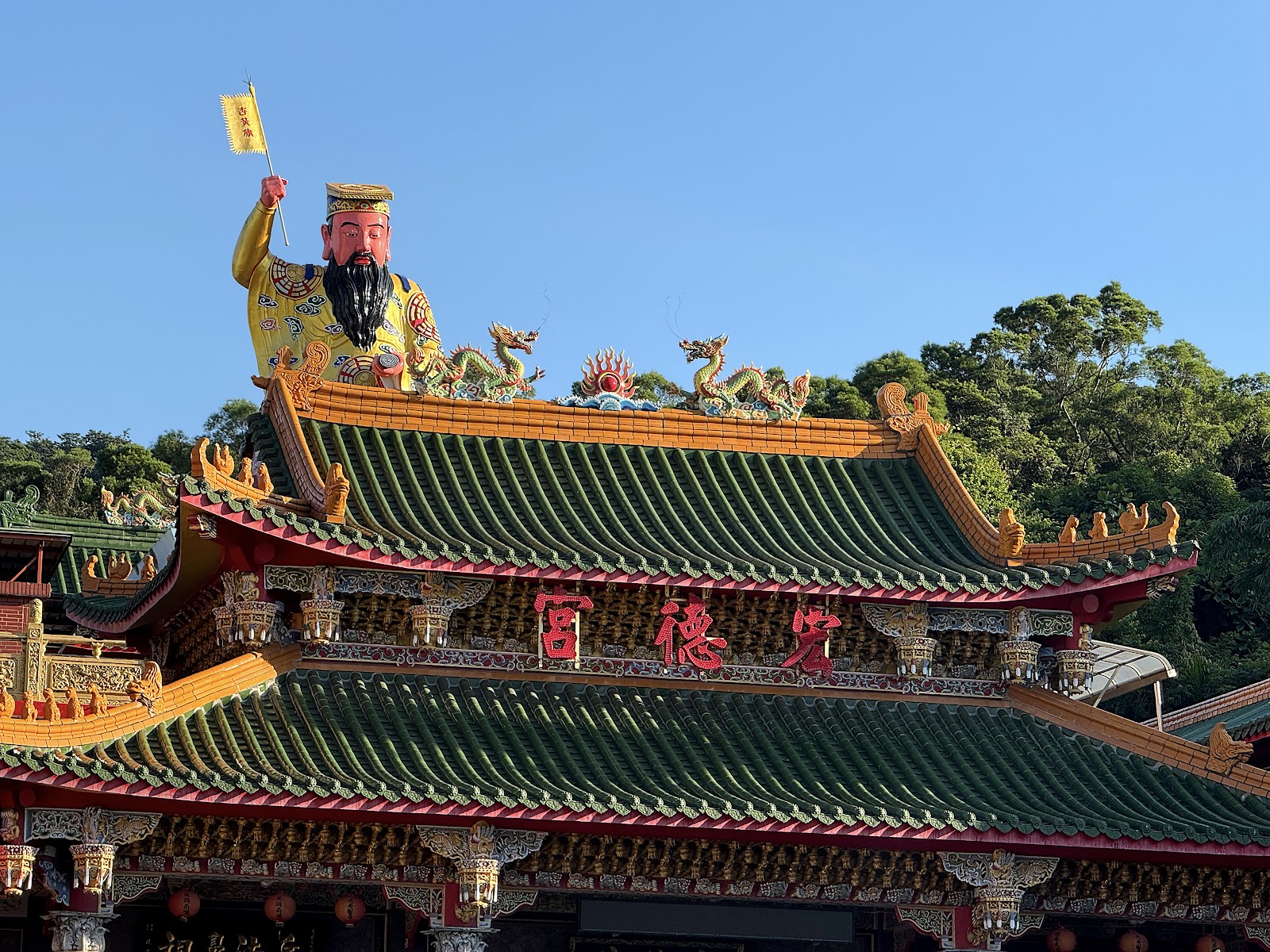 「宏德宮」以宏揚武德為名,廟宇建築雄偉,正殿供奉孫臏真人,氣勢非凡。更特別的是,後殿屋頂上立有巨大的孫臏真人神像,成為顯眼的地標。