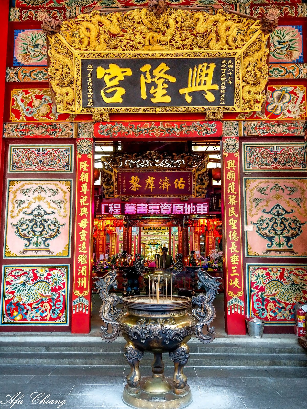 偶然路過決定進去參拜,裡面的媽祖娘娘看起來很仁慈,而後殿(大士殿)更是讓人印象深刻,獨自一人進去禮拜,大士殿主祀觀世音菩薩、配祀八卦祖師、玄壇元帥、南斗星君、北斗星君、太陽星君、太陰星君、註生娘娘和月老星君,我一踏進去,就覺得他們全都看著我,尤其是中央端坐的觀世音菩薩聖像很是莊嚴,用慈愛、悲憫的眼神望著我,臉上帶著微笑,讓人忘卻一切壓力和煩惱。整體而言興隆宮是一間很不錯的廟宇,可以多去。