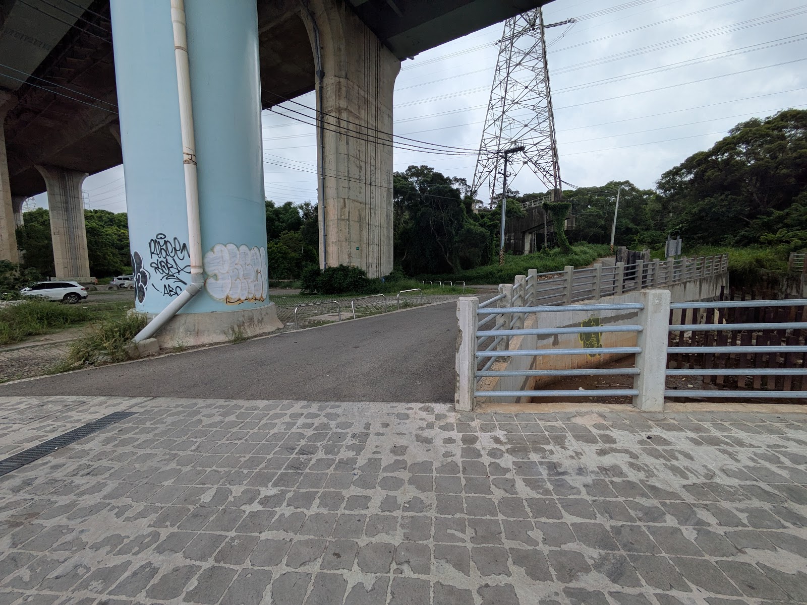 車子可以停在公車站的後面,步道的前半段非木棧道,要走到中後半段的時候才是木棧板的步道,(原來網美拍的美美的步道是在後面)我一度以為我走錯了。途中只有一個廁所,你看橋墩的樑柱上有寫著編號P23-R的地方,去程方向是在你的左手邊,途中有經過幾個疏洪池,你要走到外面的登山步道的水泥路去,其實這兩條都有相通,在步道上走路不用怕下雨不用怕曬太陽,還滿舒服的!