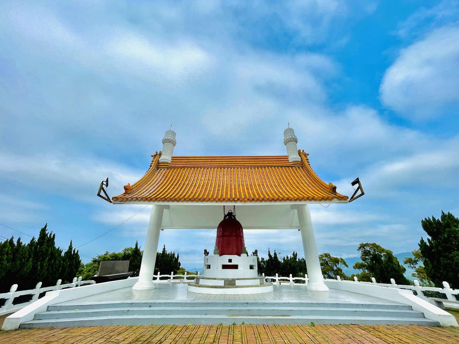 平日到這裡人不多,此鐘樓是記念台灣光復四十年集資興建,至今也有四十年,停車位不多有廁所可使用,大部分到此的人是去走鳶尾山步道,開車過來的建議可走O型路線返回這裡,慢走路程約2小時。