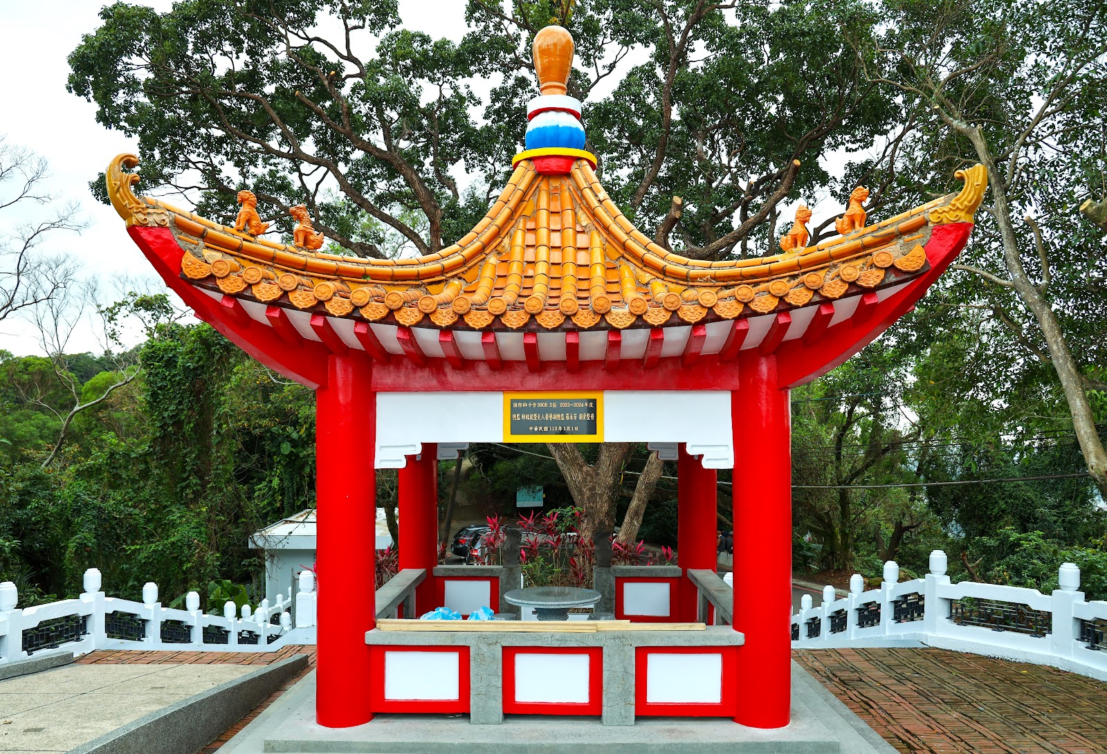 因是平日中午到達 人車不多 連我只有2台車 鳶峯亭到紀念鐘這幾百公尺有些路段陡又無法會車 開車要注意 建議停鳶峯亭走上去 紀念鐘視野真的很棒