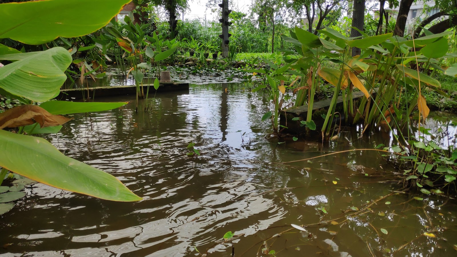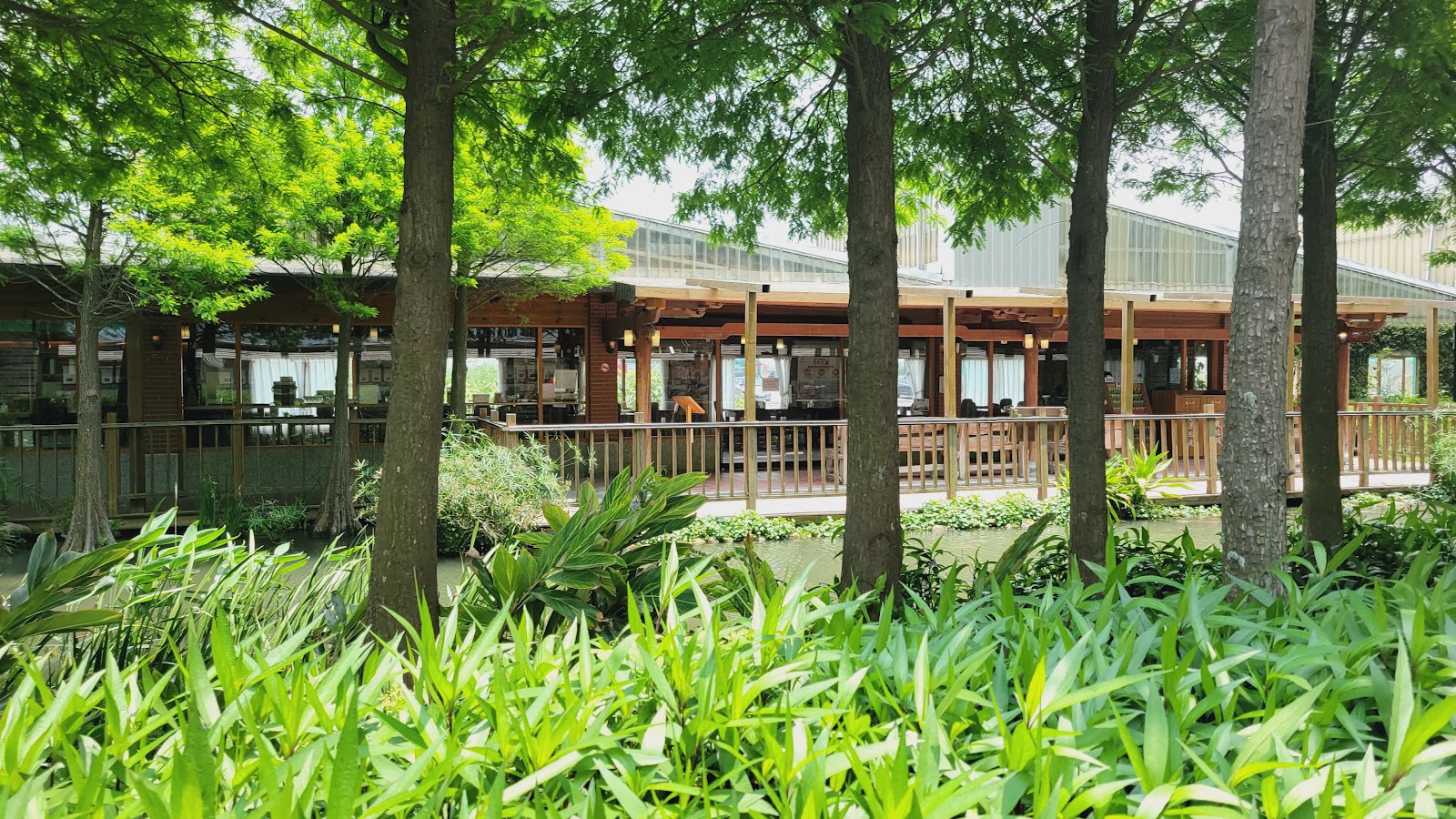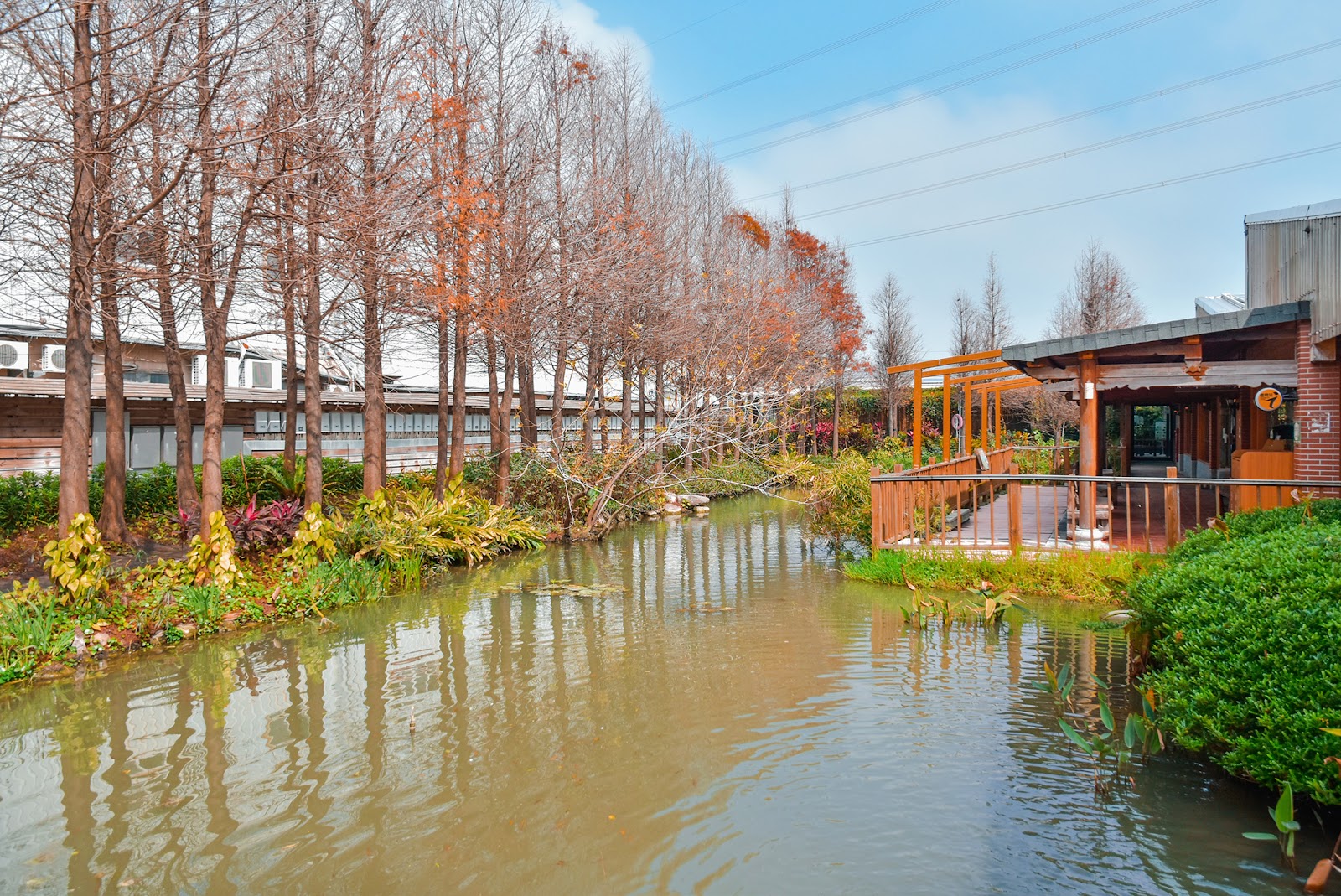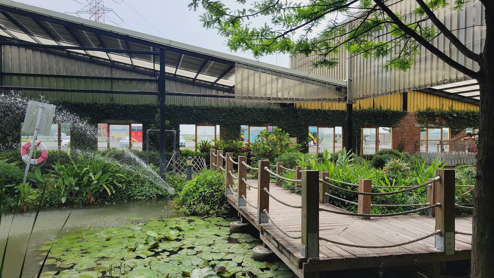 園區還有很大的水池,這個季節來 剛好看到好多的小青蛙 小孩看的超開心