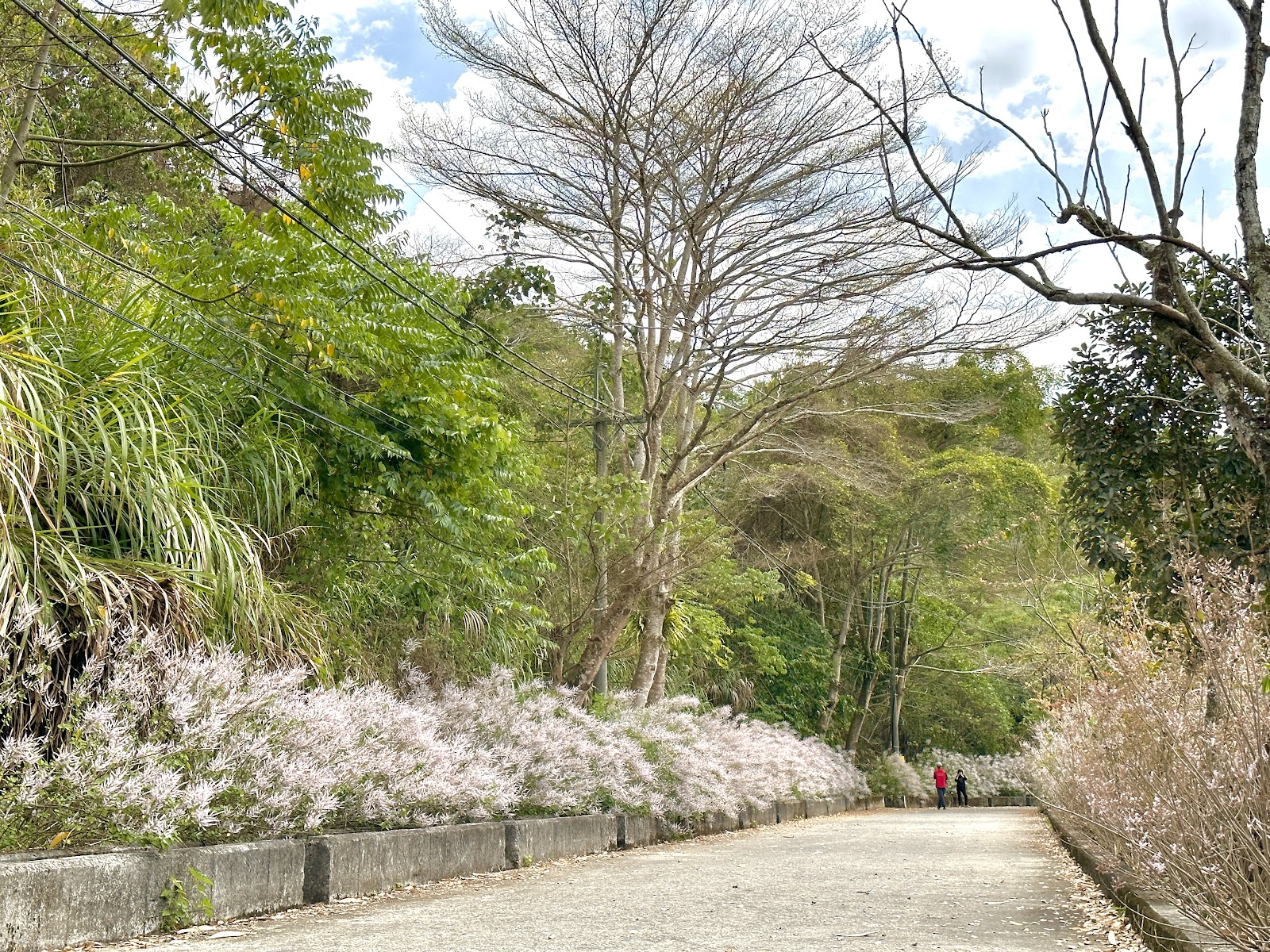 導航停瑞龍宮,旁邊就是麝香木花道,綿延兩公里左右。前段有錫葉藤,後段是麝香木,三月下旬造訪因春雨數日,麝香木已經稍微凋零,但還是不減風姿~