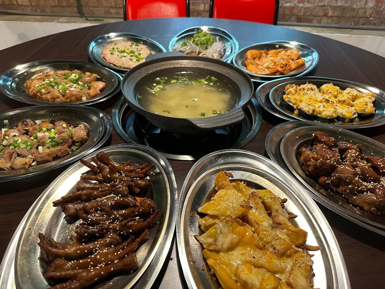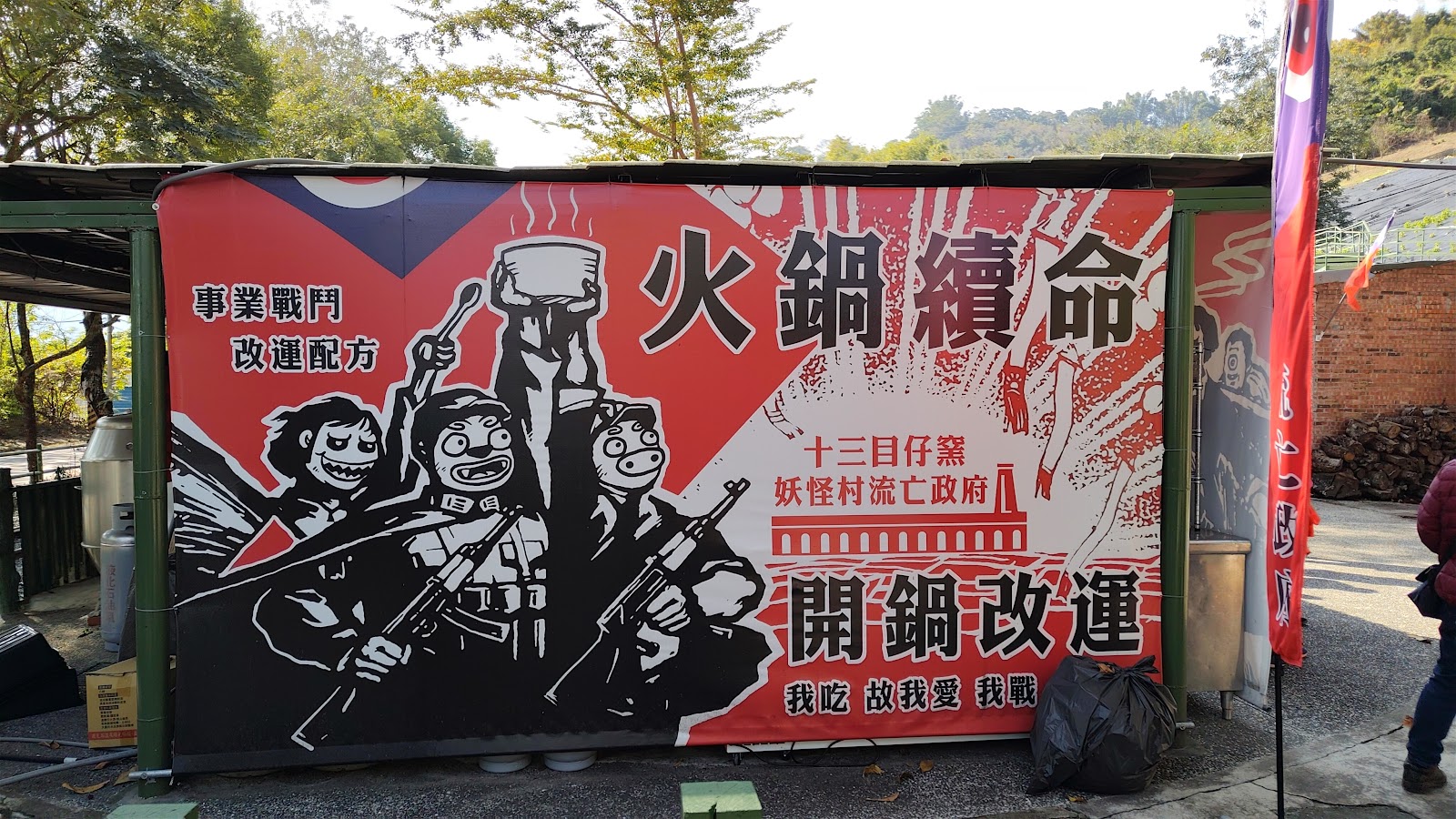原舊磚窯轉做懷舊風味料理餐廳,以戰地事物做為佈置的主題,餐點也類似軍中的部隊餐,鋼杯飯碗更讓人勾起軍中生活的回憶。今日的餐點是滷肉飯搭配一些桌菜,再加上一個大火鍋,口味還不錯。