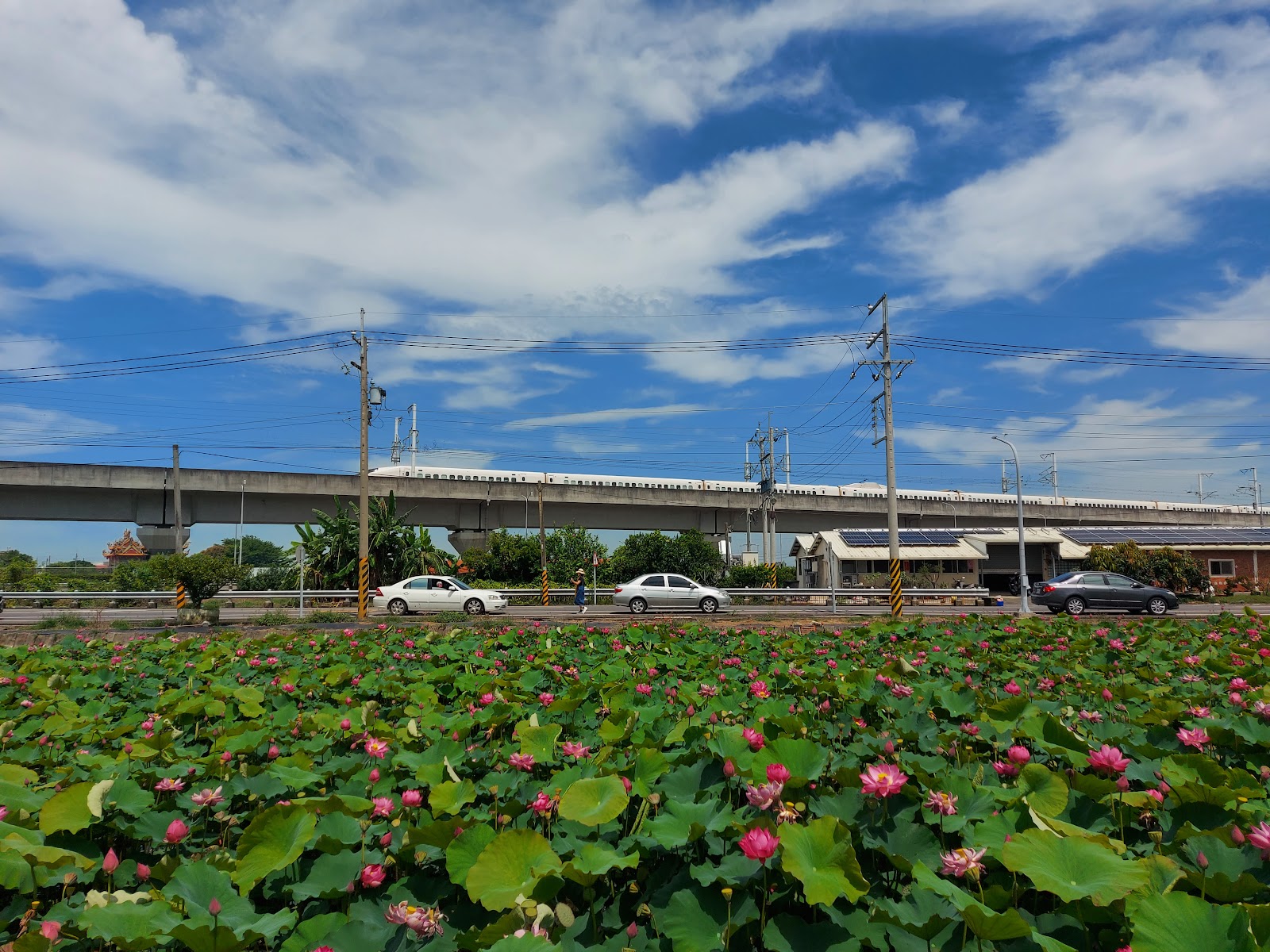 很大一片荷花園耶~開得超美,遇到女主人還送蓮蓬,說可以直接吃(回家吃了好澀喔)還能看高鐵喔~謝謝主人們用心照護