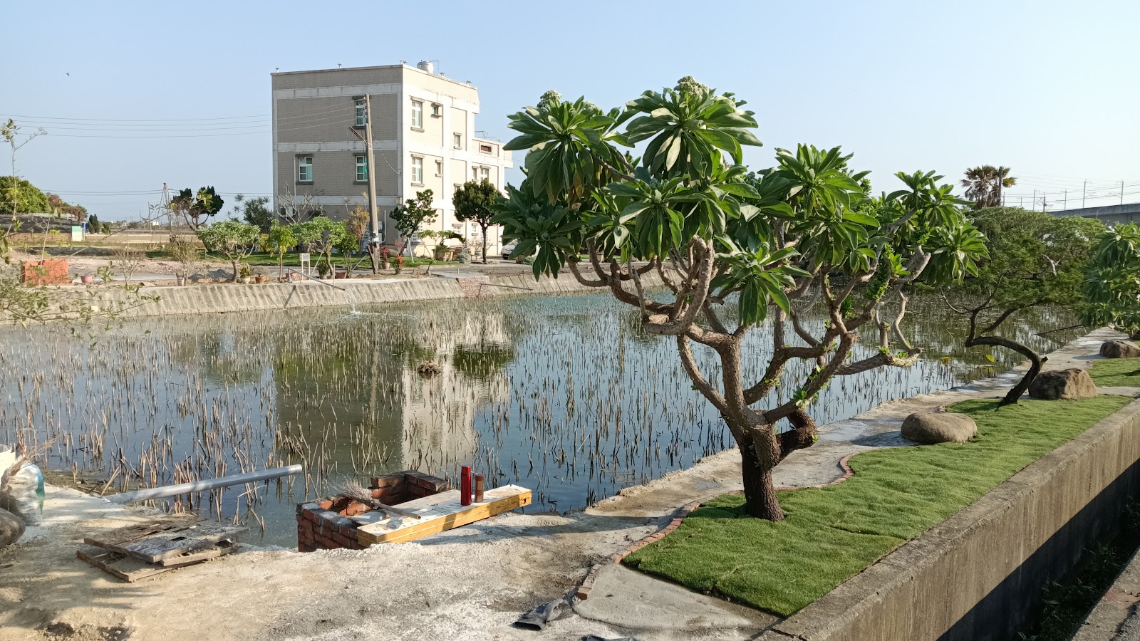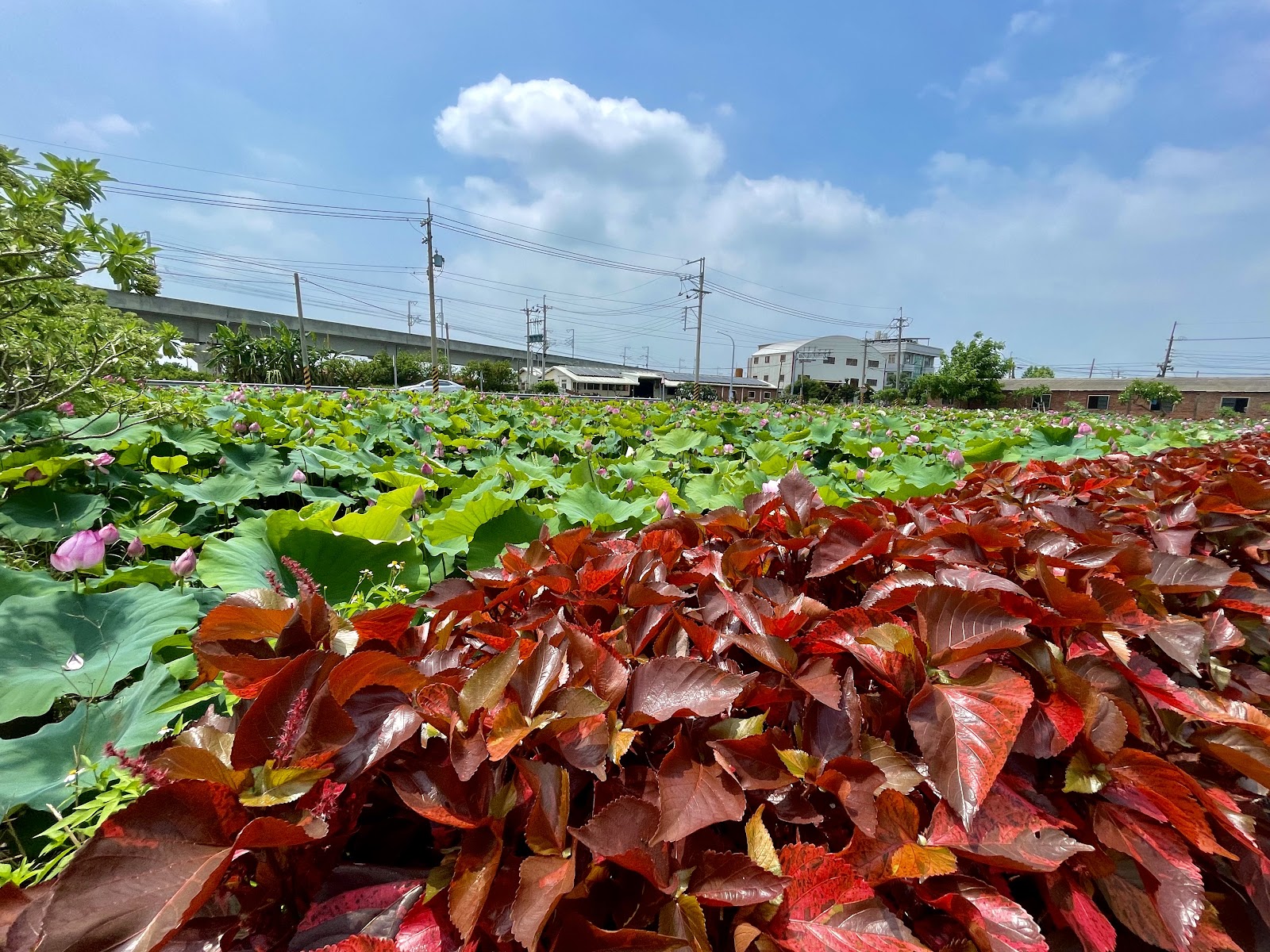 雖然面積不大,但也是ㄧ大片,在馬路旁邊,停車很方便,而且主人好貼心,馬路和荷花池有條很寬的水溝,ㄧ般很難跨越,主人在水溝上舖了好幾道鐵板,而且是固定在水溝上,不會因人走動而位移,真的很棒