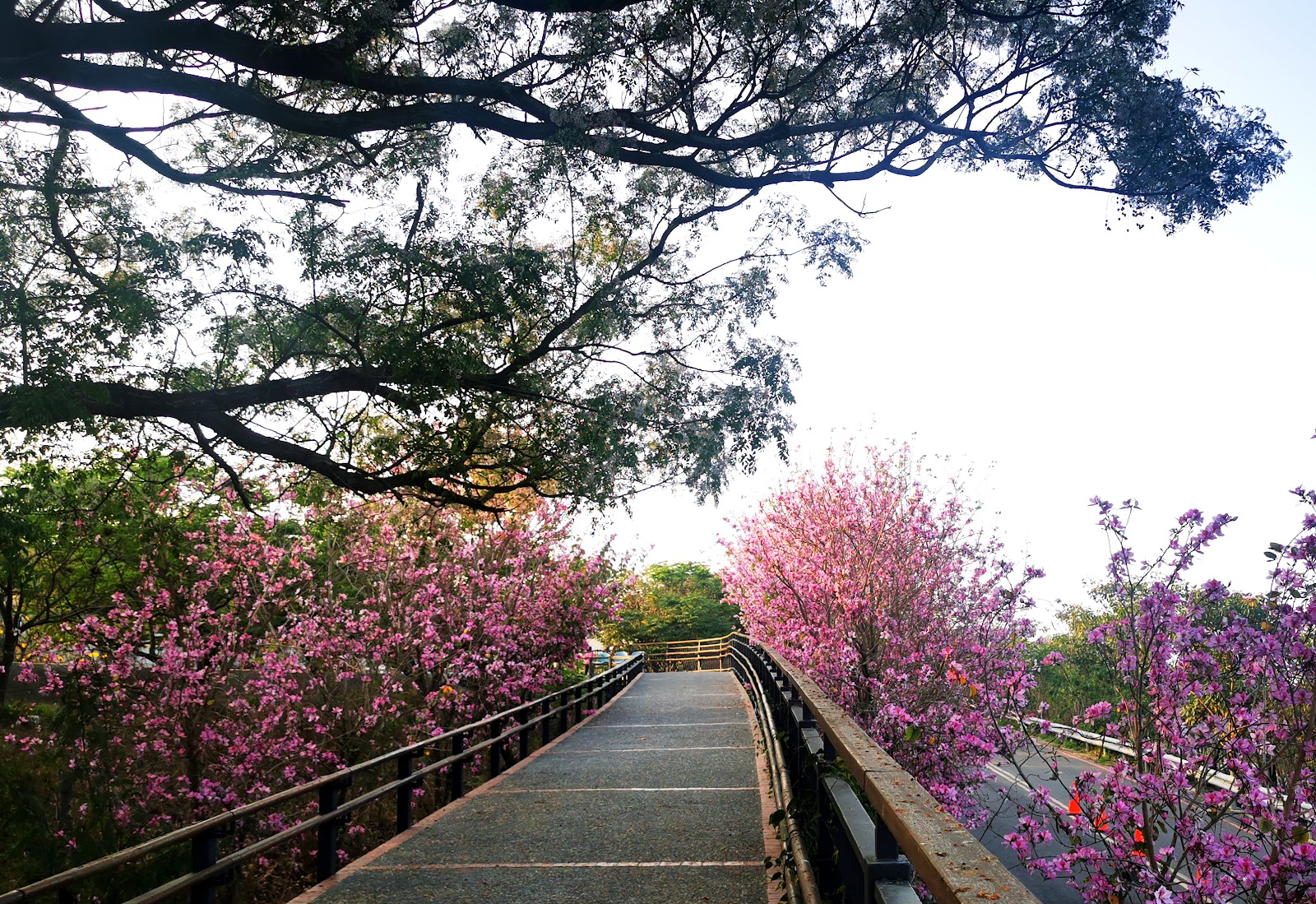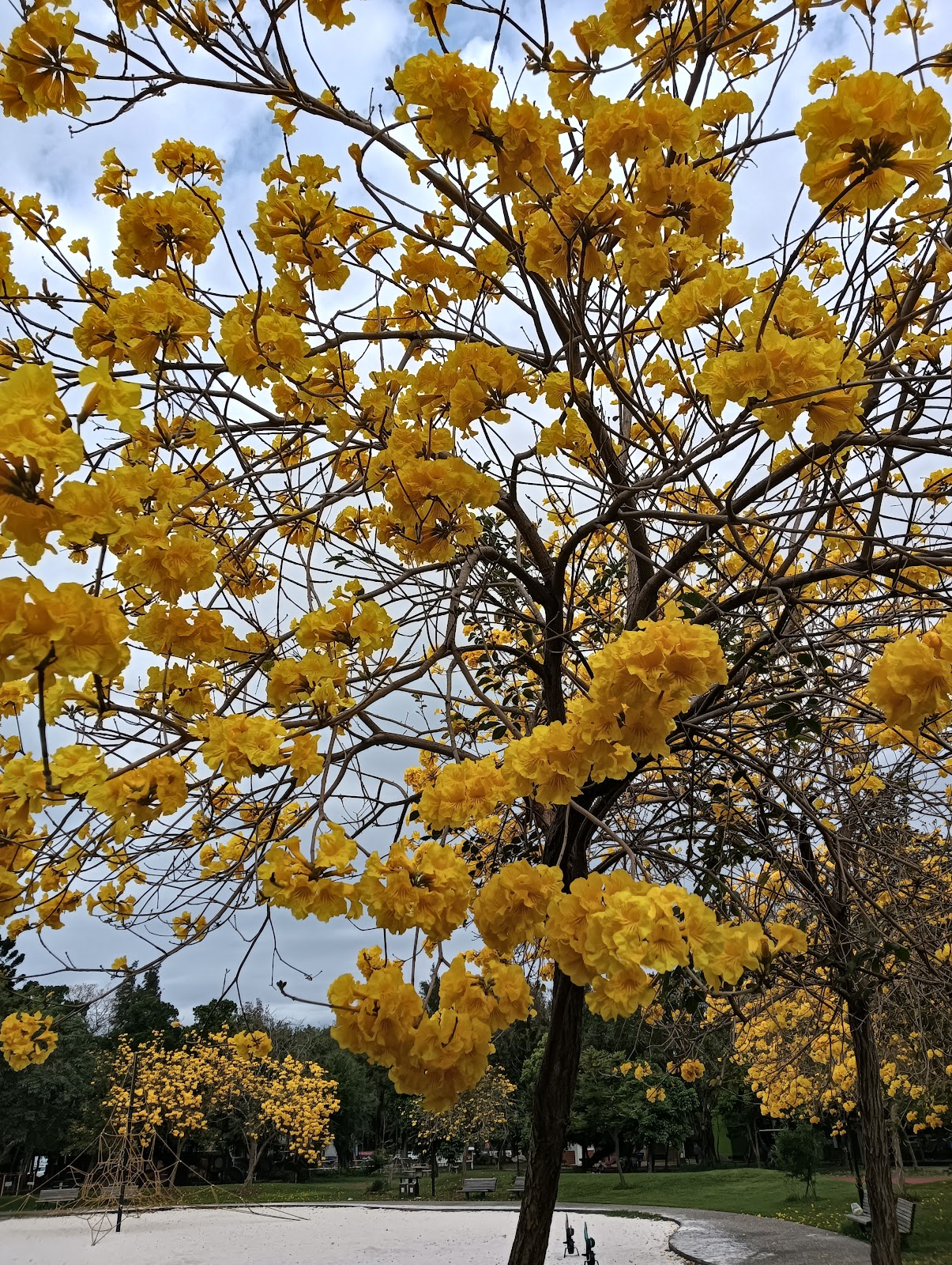 台灣欒樹盛開時很美,步道規劃良好,旁邊還有一片草坪,不過草有點長,可能需注意蚊蟲