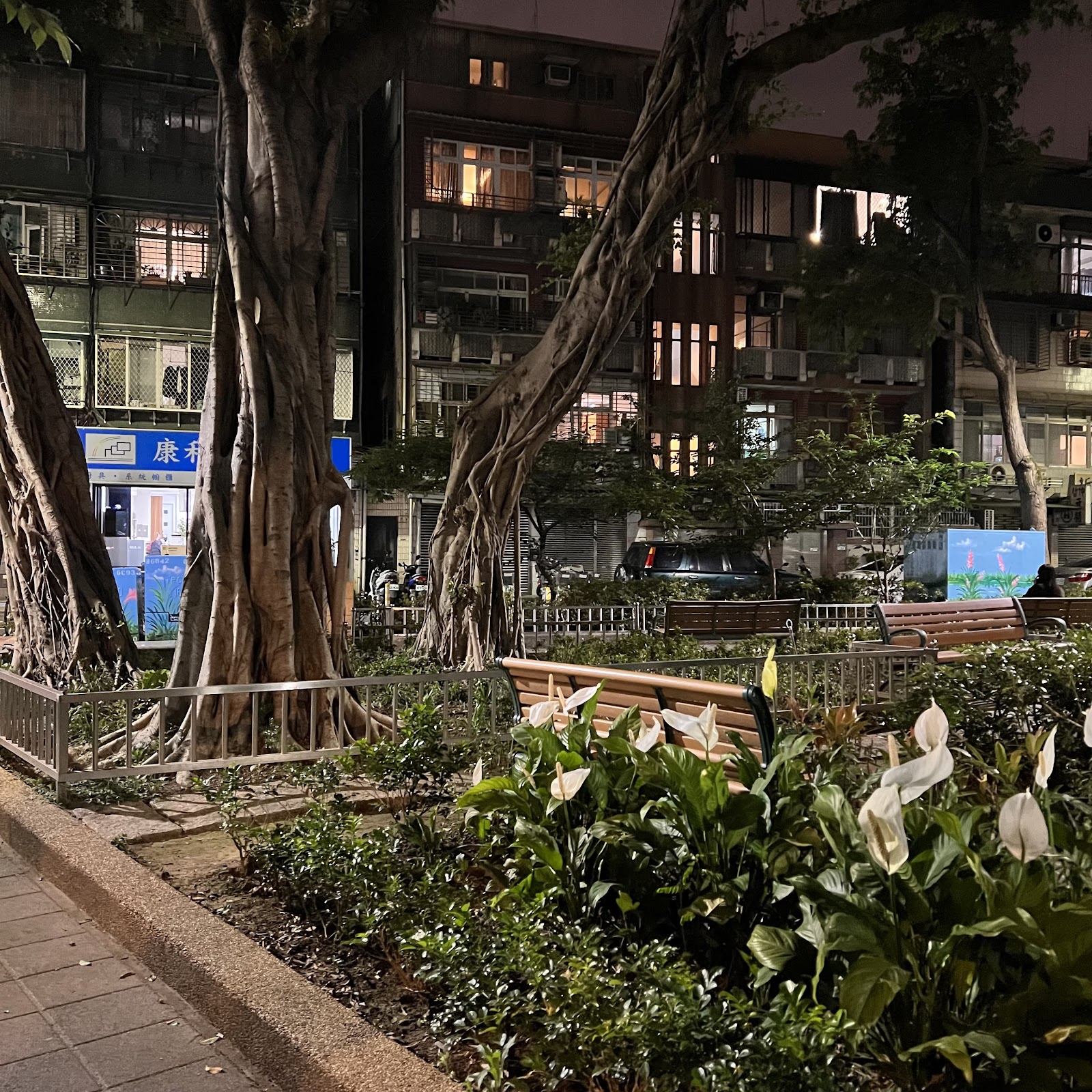 在台北市中算不錯的小公園,對面就有便利商店和一些小吃,外圍有一圈不窄的人行道,可以慢跑~