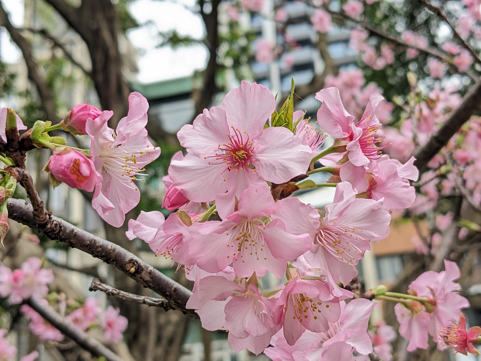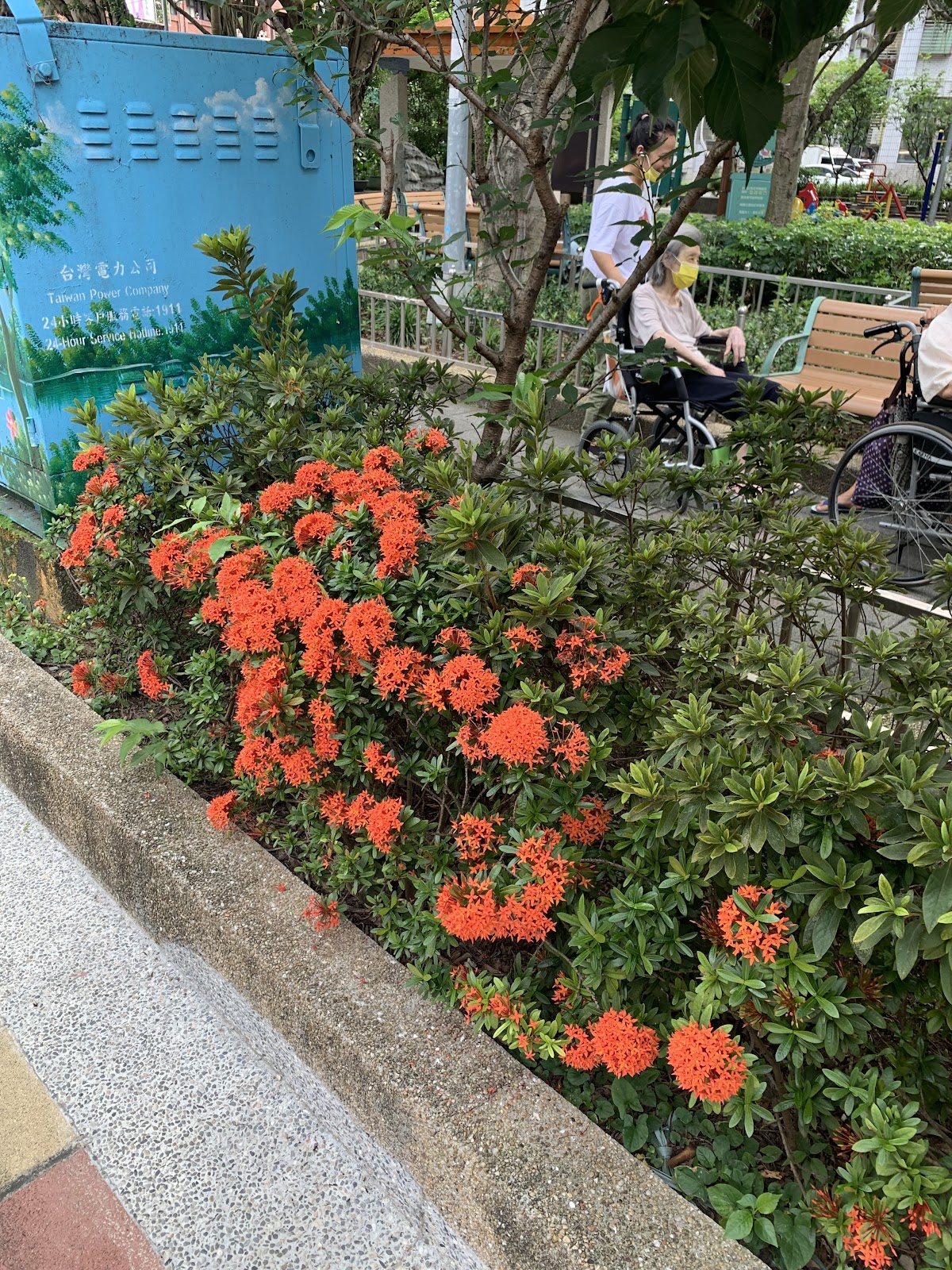 社區裡面的小公園,似乎一年四季都都可以看到正值花期盛開的花,春天也有好幾棵櫻花樹;旁邊有 ubike,對面有便利商店,運動器材、溜滑梯、涼亭、椅子全都不缺。