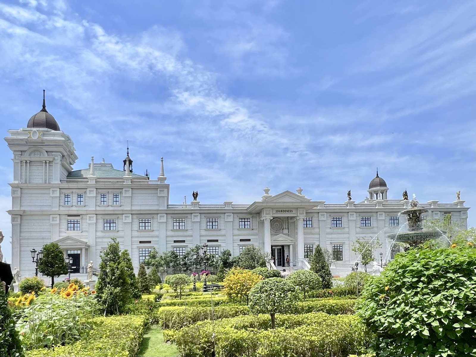 佐登妮絲城堡的建築真的很厲害,完全就是歐洲古典宮廷風。主建築是白色的外牆,看起來超乾淨、超高雅,還有那些細緻的窗花設計和塔樓,超適合拍照!一進到這裡,就有一種進入歐洲貴族的莊園的感覺。周圍的庭院也非常精心設計,有噴泉、有花園,每個角落都美得像明信片一樣,難怪大家來這裡拍婚紗、拍日常照片,怎麼拍都好看。