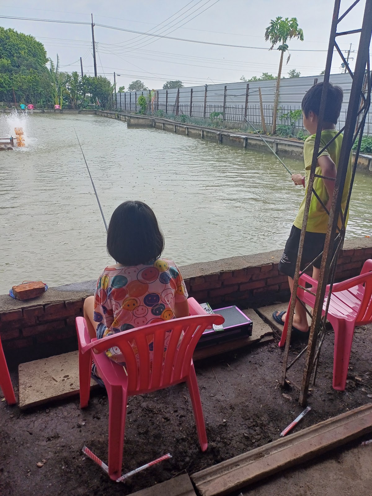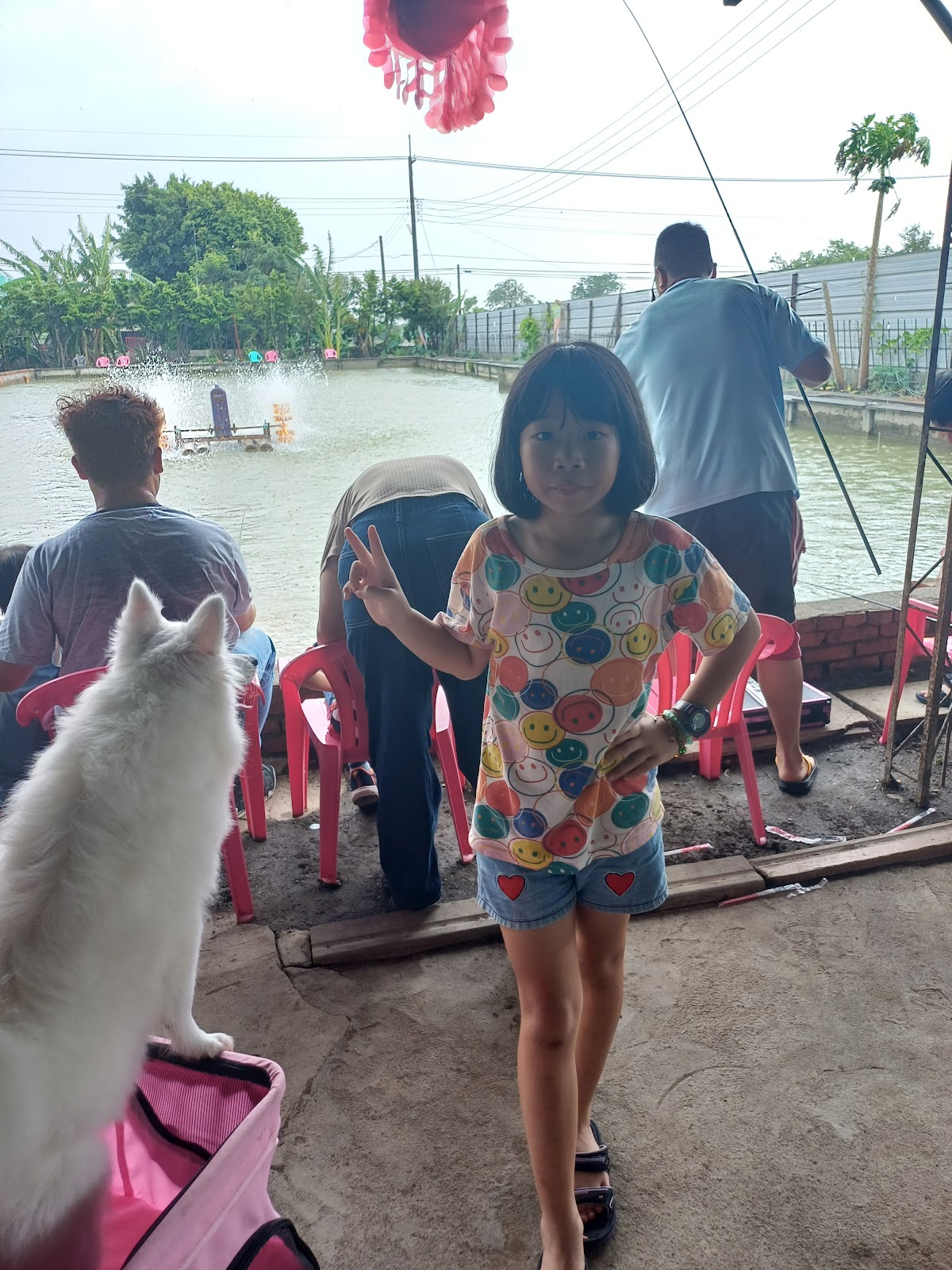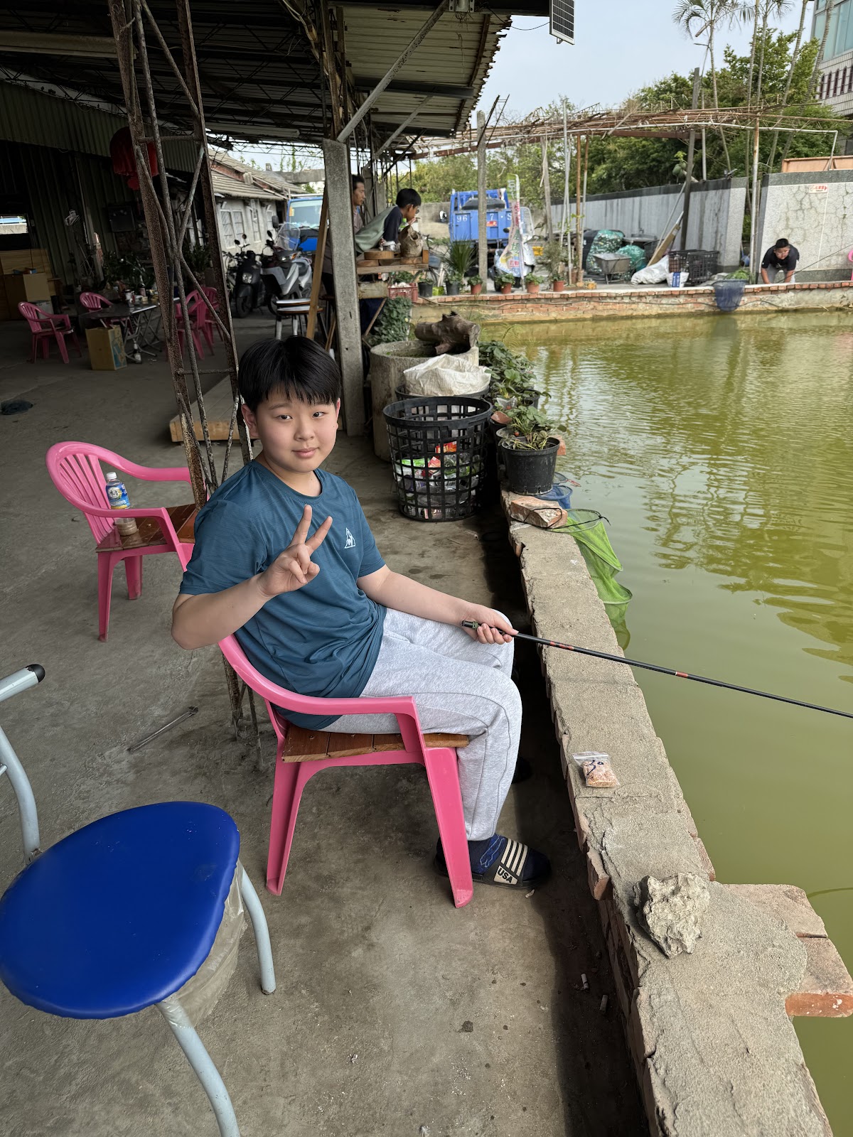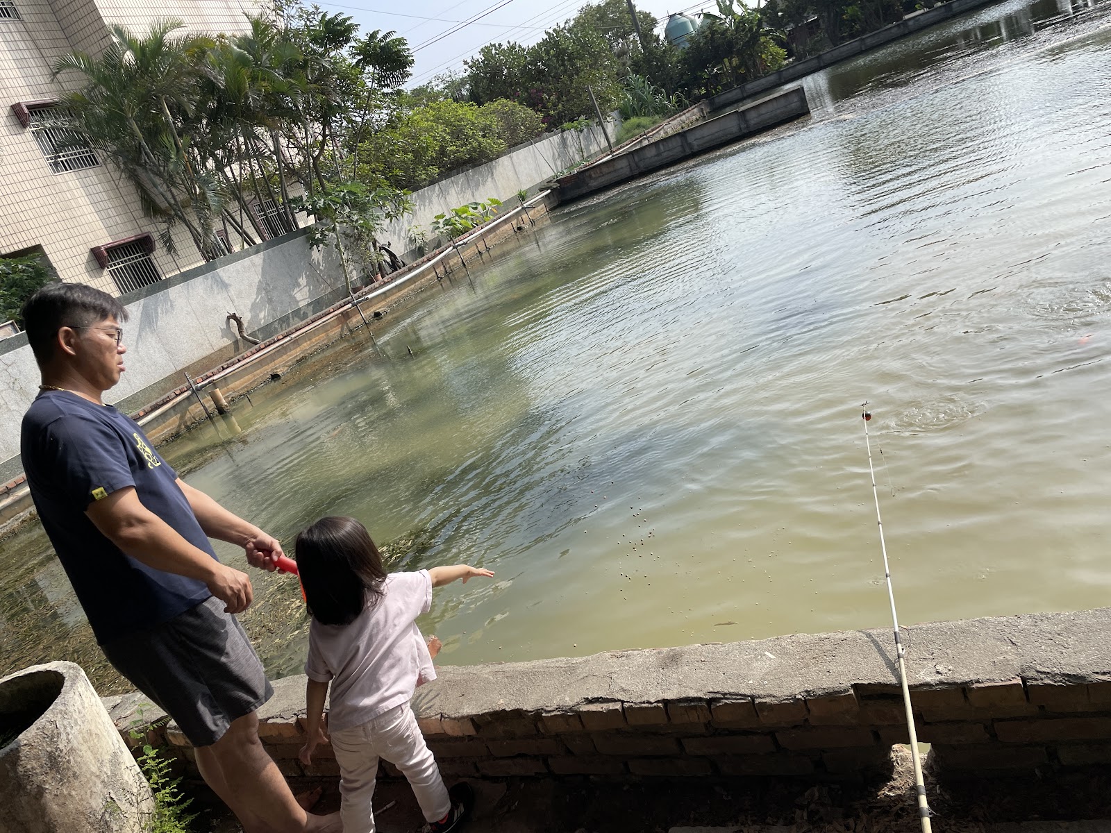 題外話,兒子後來離開菜比巴老媽不專業指導後(轉移陣地),就遇到熱心的大哥哥教他釣了…我和女兒倒也樂得輕鬆,雖然不懂,但也在池邊聊天、看豬豬和雞鴨。而且我後來發現能沈浸在一件看起來平淡需要等待的事情上,實屬不容易,心裡需要平靜、專注、還有無限的耐心,生活體驗幫我們上一堂寶貴的課程。老闆和老闆娘很友善,若有不懂都可以提問,非常照顧釣客~
